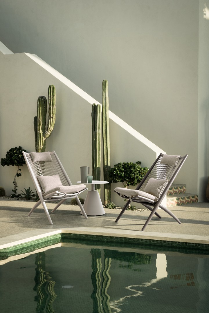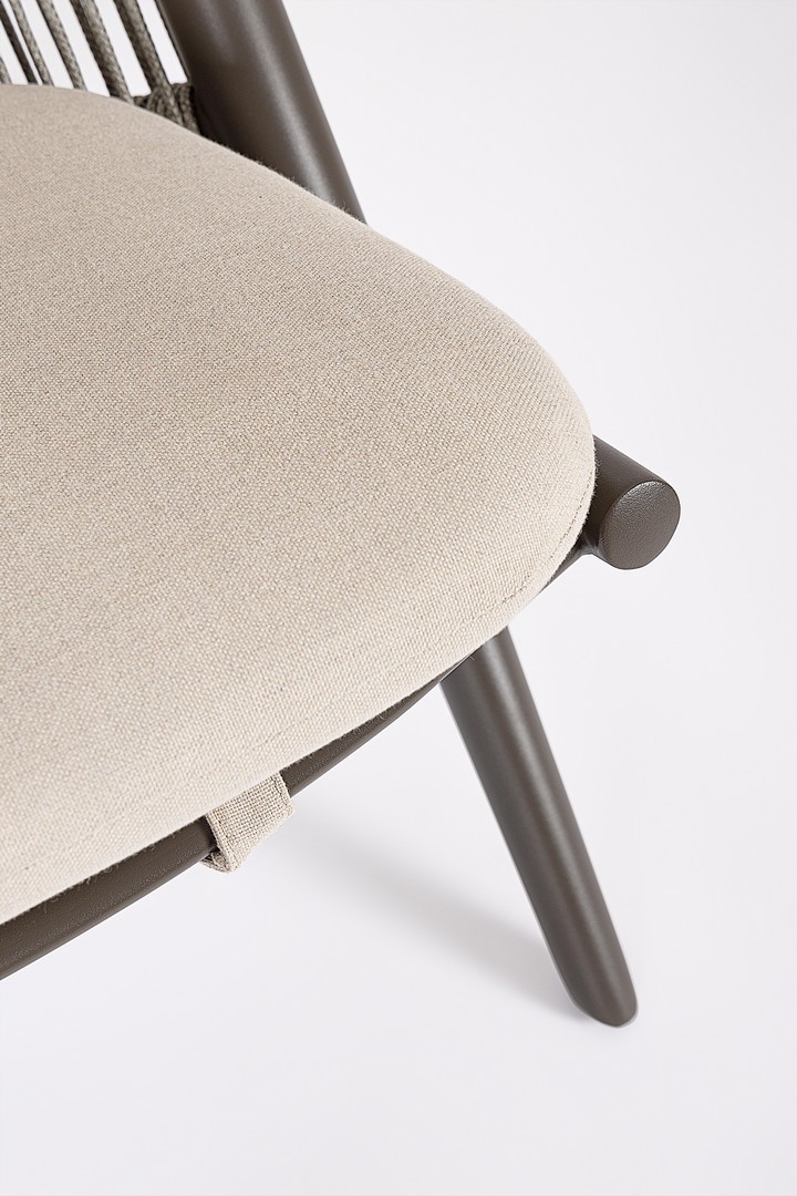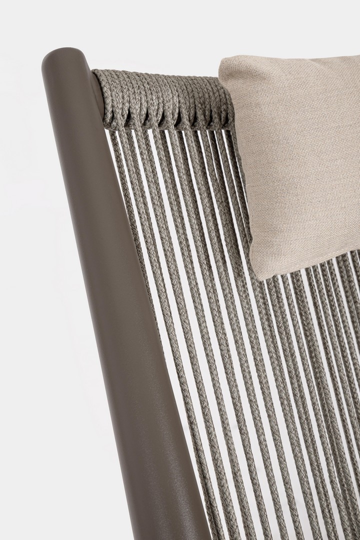 Hliníkový rám s práškovým nástrekom (polyester), výplet z polyesterového popruhu s úpravou proti vode a UV žiareniu. Poťahy odnímateľných vankúšov z polyesteru (280 g/m²).