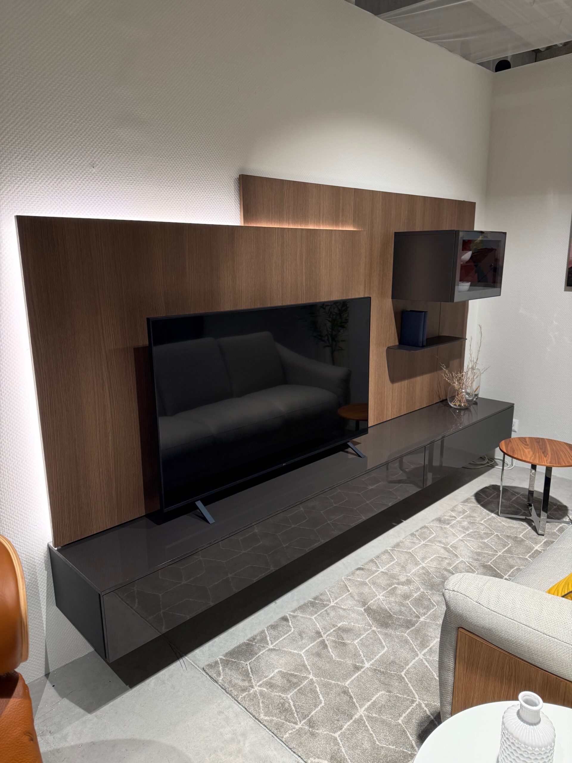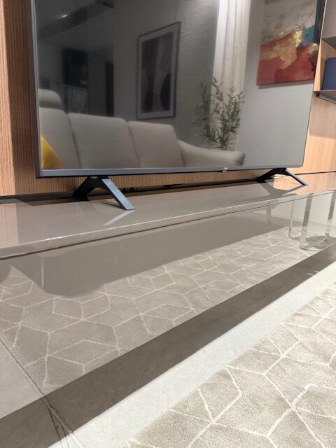 Rozmer zostavy: š.TV skrinky 280cm, hĺbka 42cm, výška skrinky 21cm + panel (v závislosti od zavesenia od zeme)