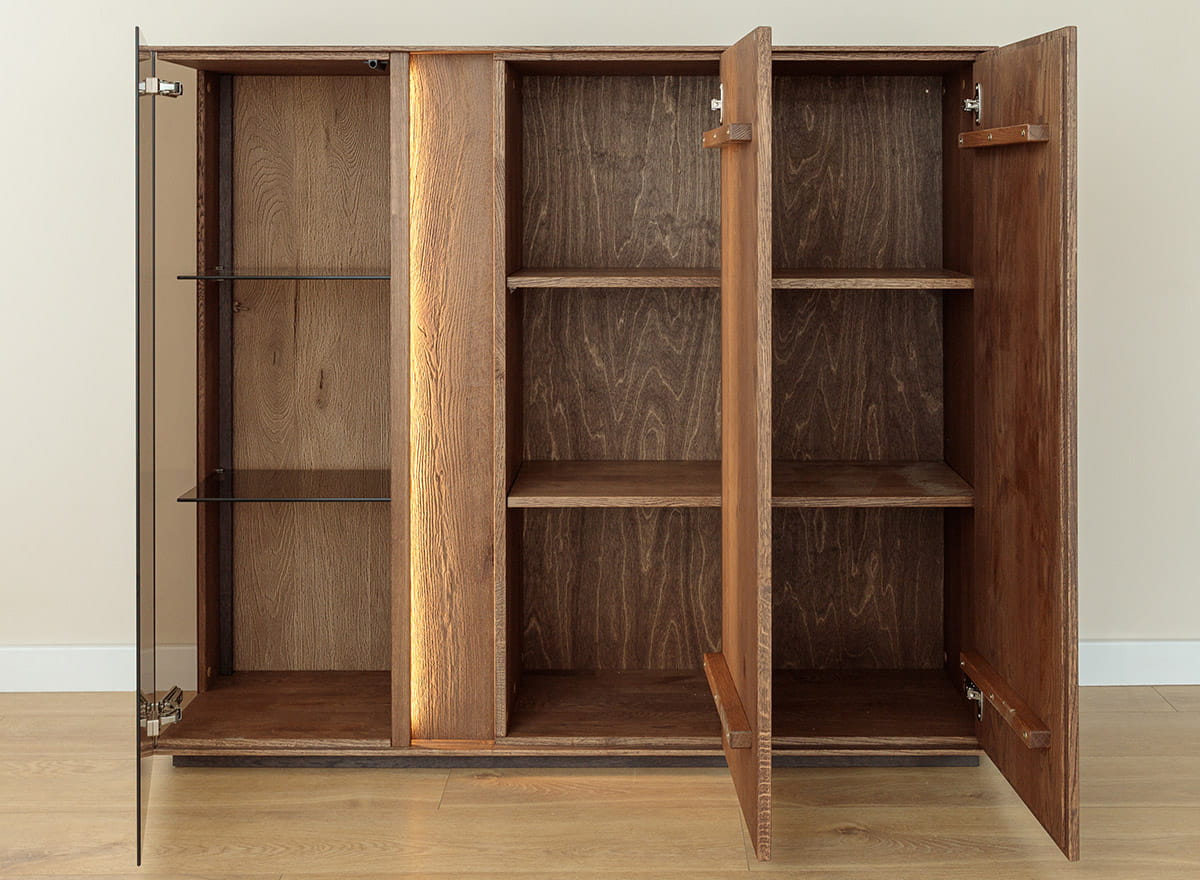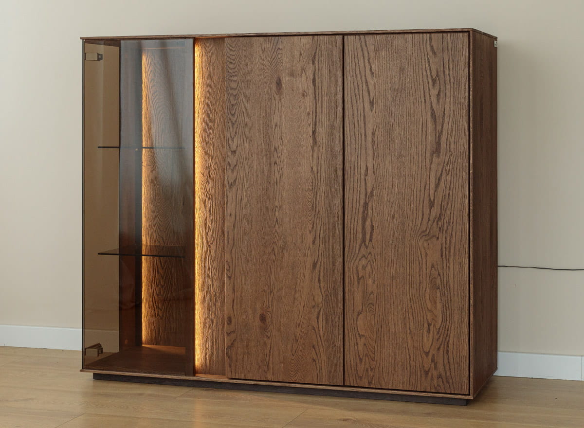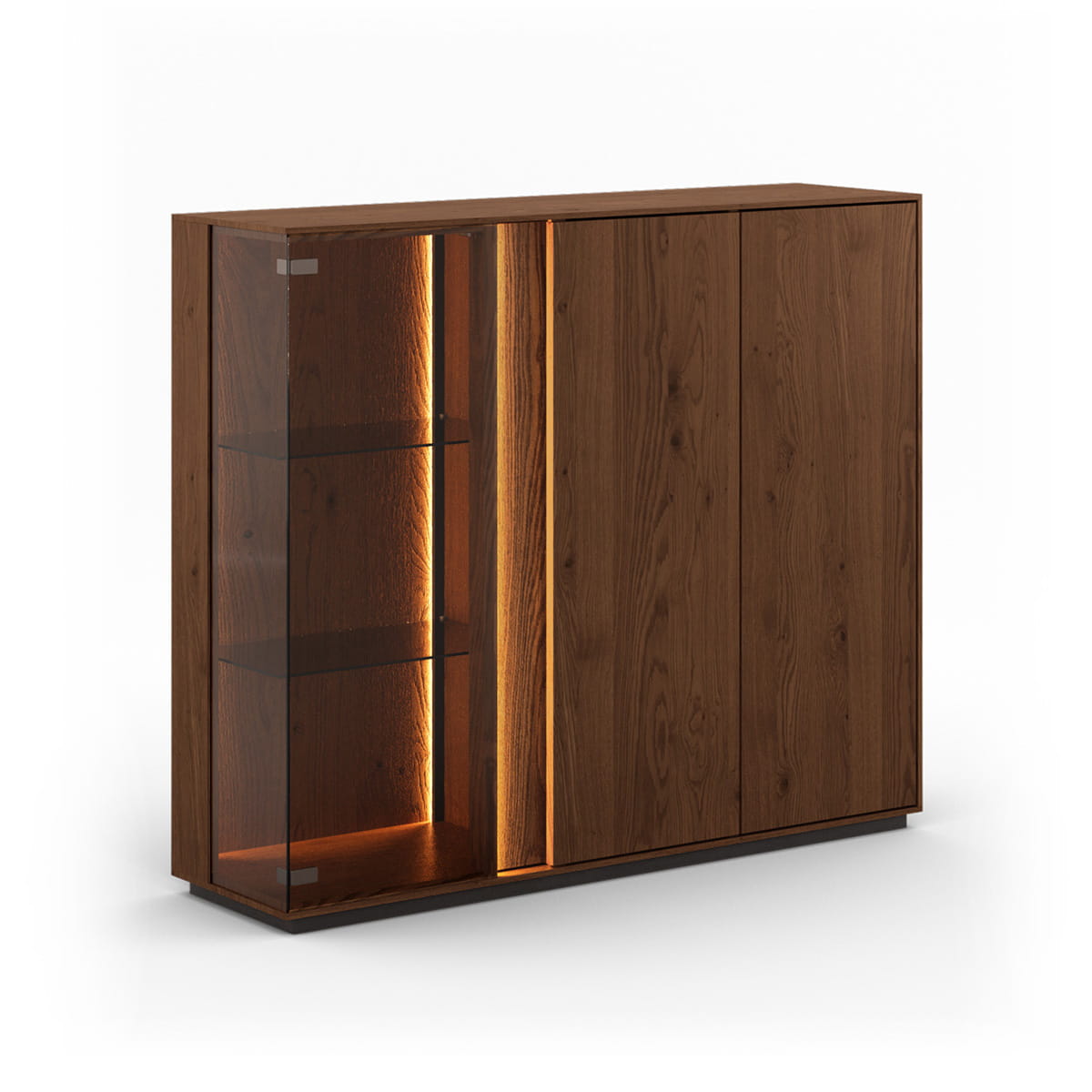 Pridať do sledovača cienDubová nízka trojitá vitrína s osvetlením tabaková Collodi