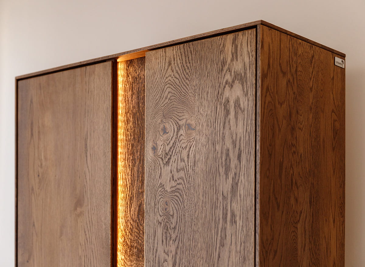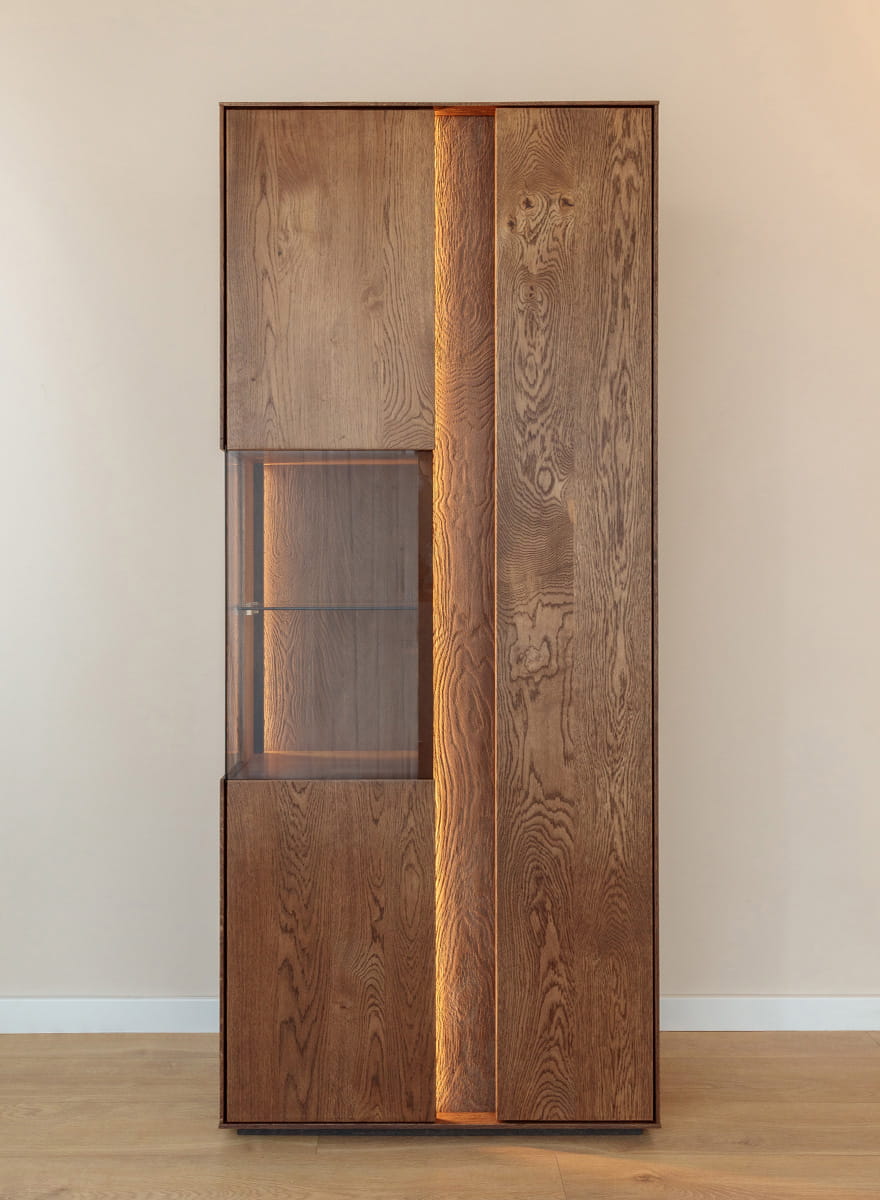 Pridať do sledovača cienNiekedy jeden prízvuk nestačí. Dvojitá vitrína Collodi je silnejším, výraznejším prvkom, ktorý okamžite upúta pozornosť. Teplý odtieň tabaku a prírodná štruktúra divokého duba tvoria duo, ktoré do interiéru vnáša eleganciu a útulnosť. Olejovaná povrchová úprava zvýrazňuje hĺbku dreva, zatiaľ čo jednoduchá geometrická forma dodáva nábytku moderný nádych. V obývacej izbe, jedálni alebo pracovni – všade tam, kde sa štýl a funkčnosť počítajú v jednom.