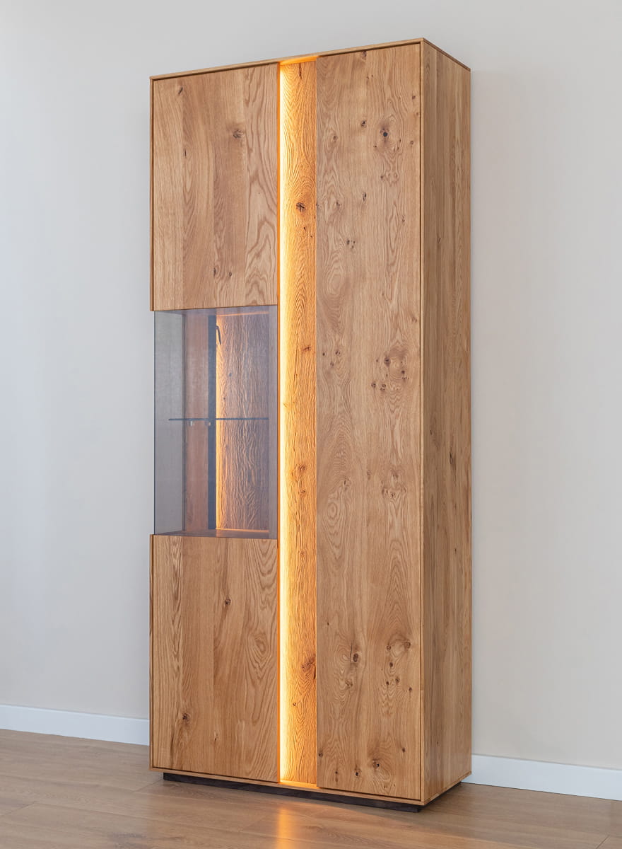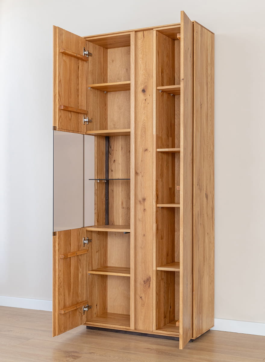 Pridať do sledovača cienJedinečná dvojitá dubová vitrína ponúkaná na tejto podstránke sa rýchlo stane stredobodom pozornosti v každej miestnosti. Jej farba – hlboký zlatý dub – vnáša do interiéru atmosféru luxusu a domáceho tepla. Na jednej strane vitríny sa nachádza jemné presklenie s vloženou sklenenou poličkou, ktoré dokonale prezentuje vybrané predmety a dodáva im mimoriadny lesk. Na druhej strane plná predná strana dodáva potrebnú intimitu, diskrétnosť a z druhej strany nam poskytuje dokonalé miesto na uloženie vecí, ktoré majú zostať mimo dohľadu hostí. Je to kus nábytku, ktorý sa ľahko prispôsobí rôznym interiérovým zariadeniam.