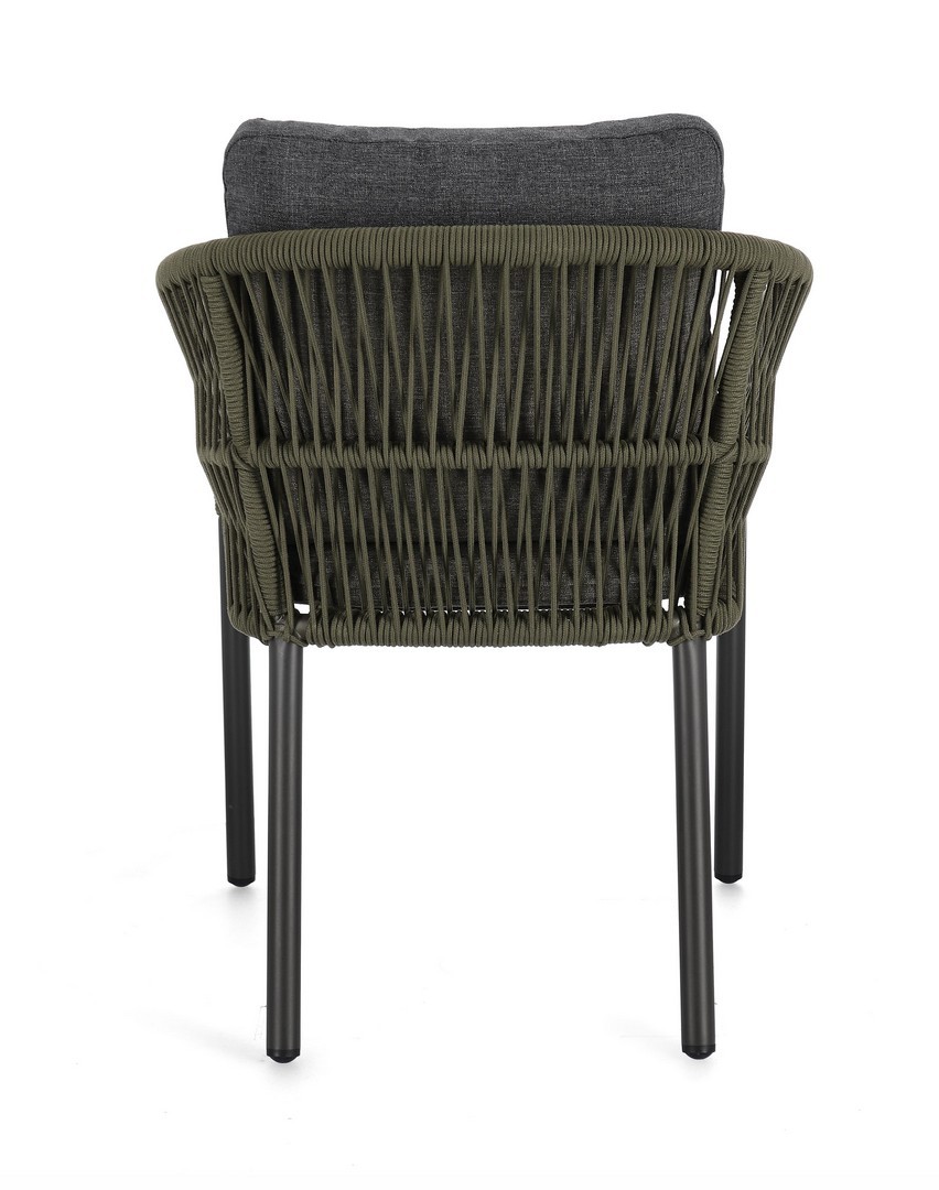 Konštrukcia z hliníka s práškovou povrchovou úpravou (polyester). Výplet na vonkajšie použitie z polyesterového lana. Odnímateľné vankúše zo 100 % vodoodpudivého polyesteru.