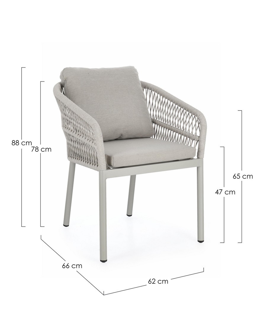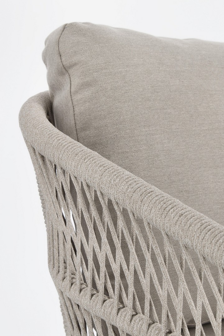 Konštrukcia z hliníka s práškovou povrchovou úpravou (polyester). Výplet na vonkajšie použitie z polyesterového lana. Odnímateľné vankúše zo 100 % vodoodpudivého polyesteru.