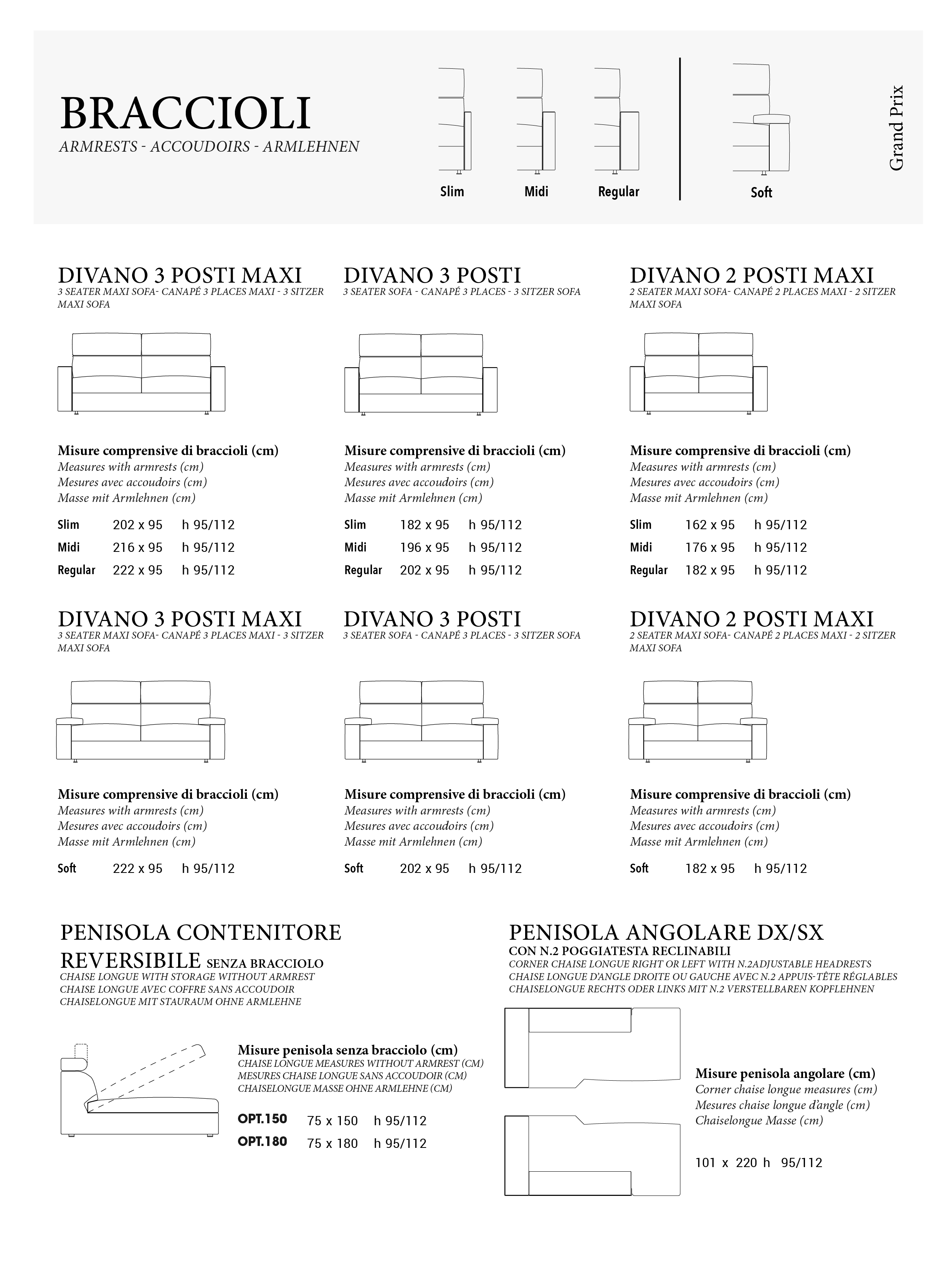 Okrem toho si môžete vybrať z rôznych štýlov podrúčok: Slim, Midi, Regular alebo Soft. Hranatejšie podrúčky dodávajú moderný a minimalistický vzhľad, zatiaľ čo mäkké podrúčky dodávajú nádych mäkkosti a pohostinnosti.