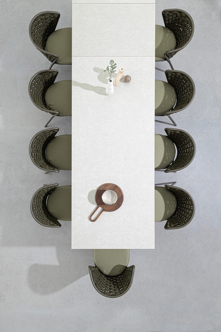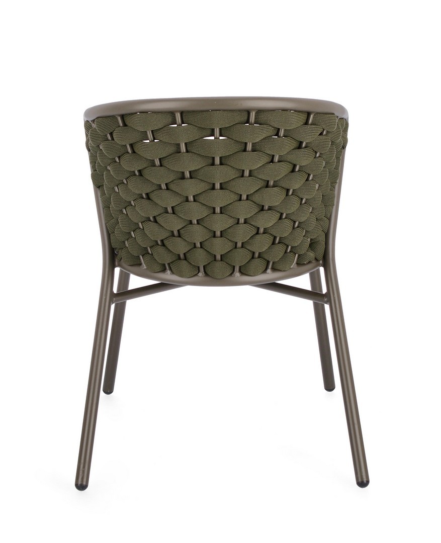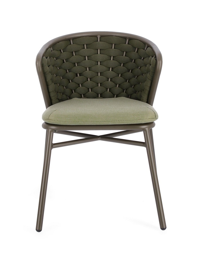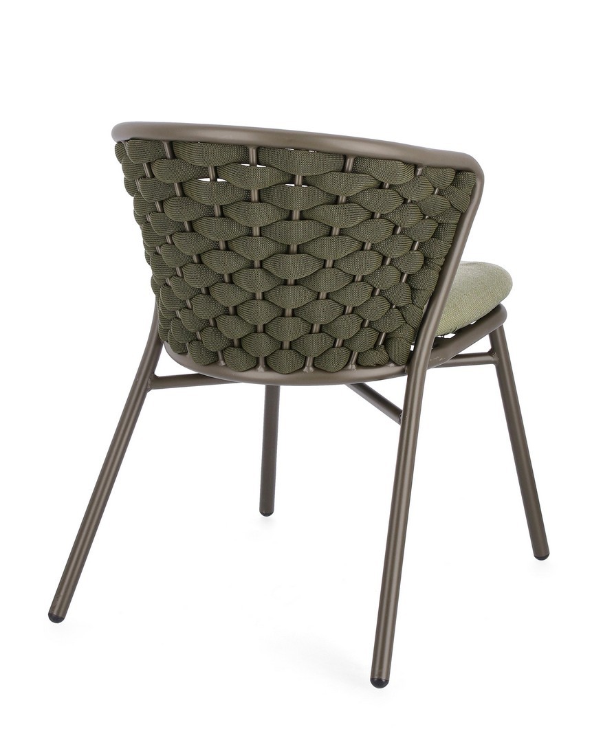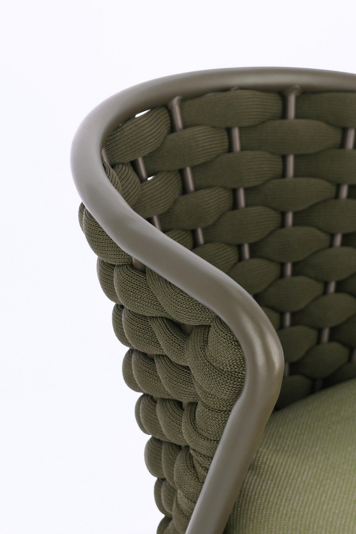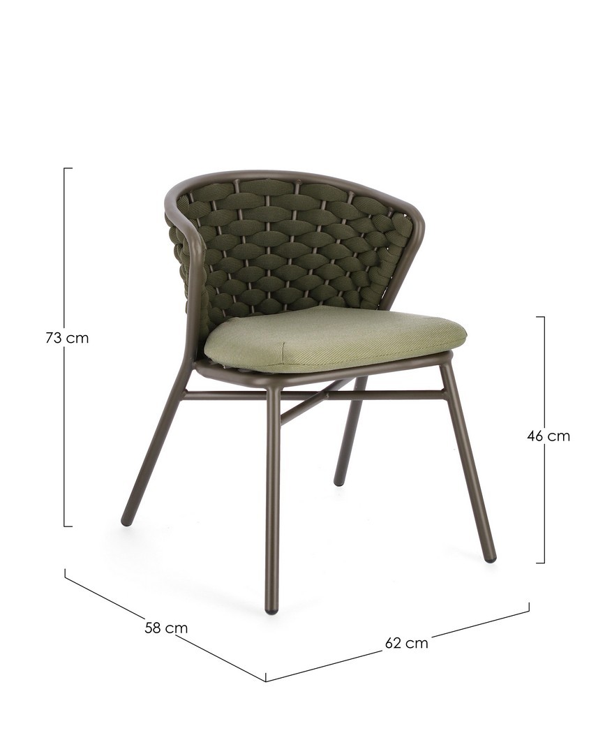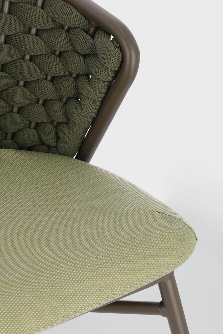 Hliníkový rám s práškovou povrchovou úpravou (polyester). Výplet z textilénového lana s výplňou z nitrilovej gumy. Sedací vankúš s odnímateľným poťahom z vodoodpudivej olefínovej tkaniny (100 % polypropylén).