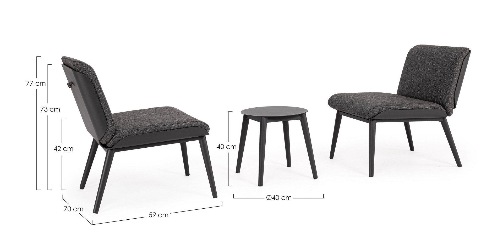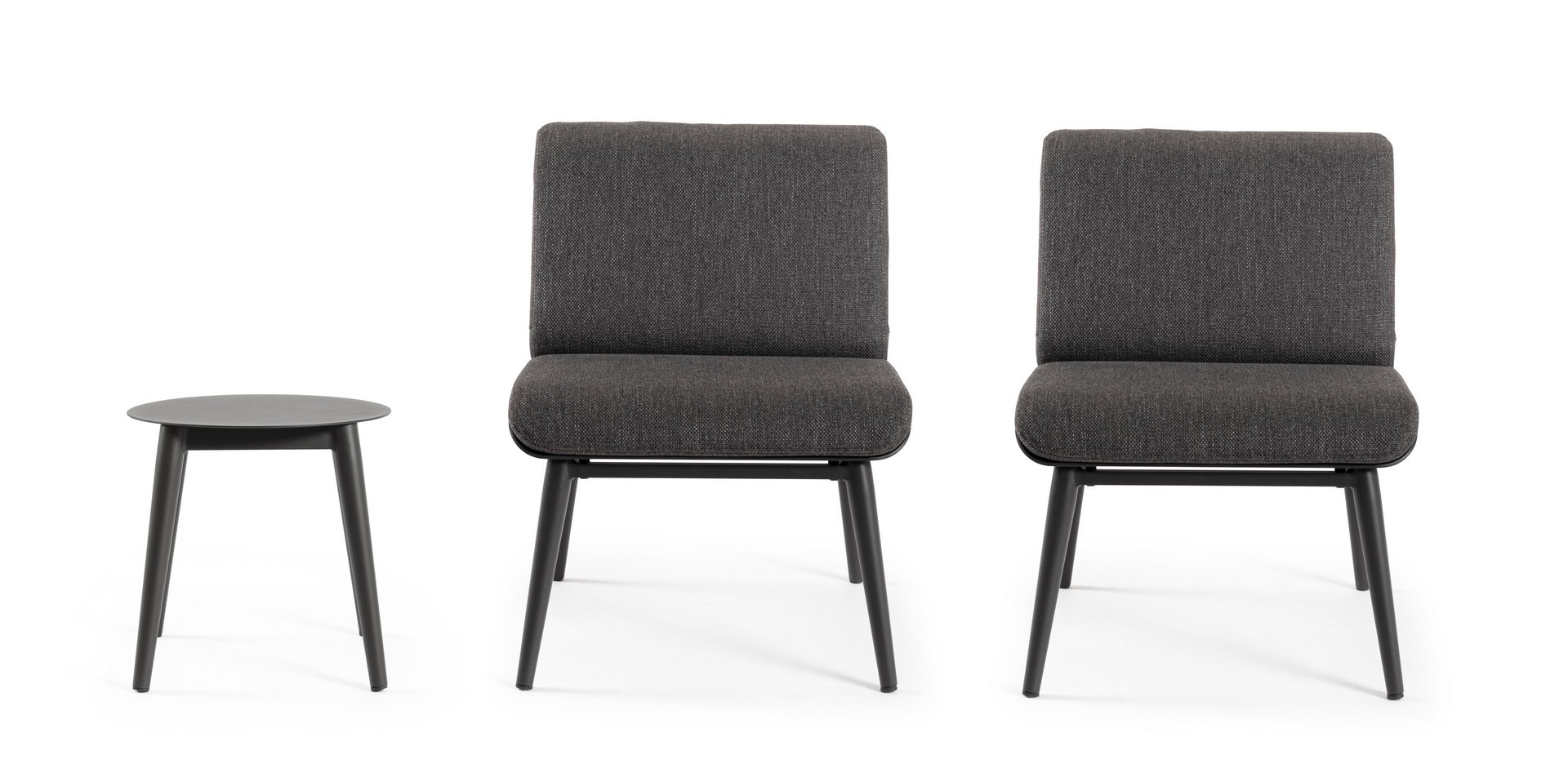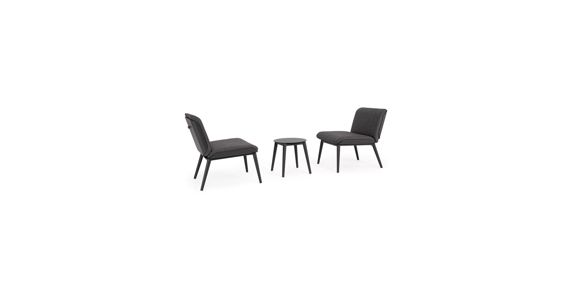 ISABELA CHARC záhradný 3-set je moderný a pohodlný set pozostávajúci z dvoch kresiel a stolíka, ideálny na relax na terase, balkóne alebo v záhrade.