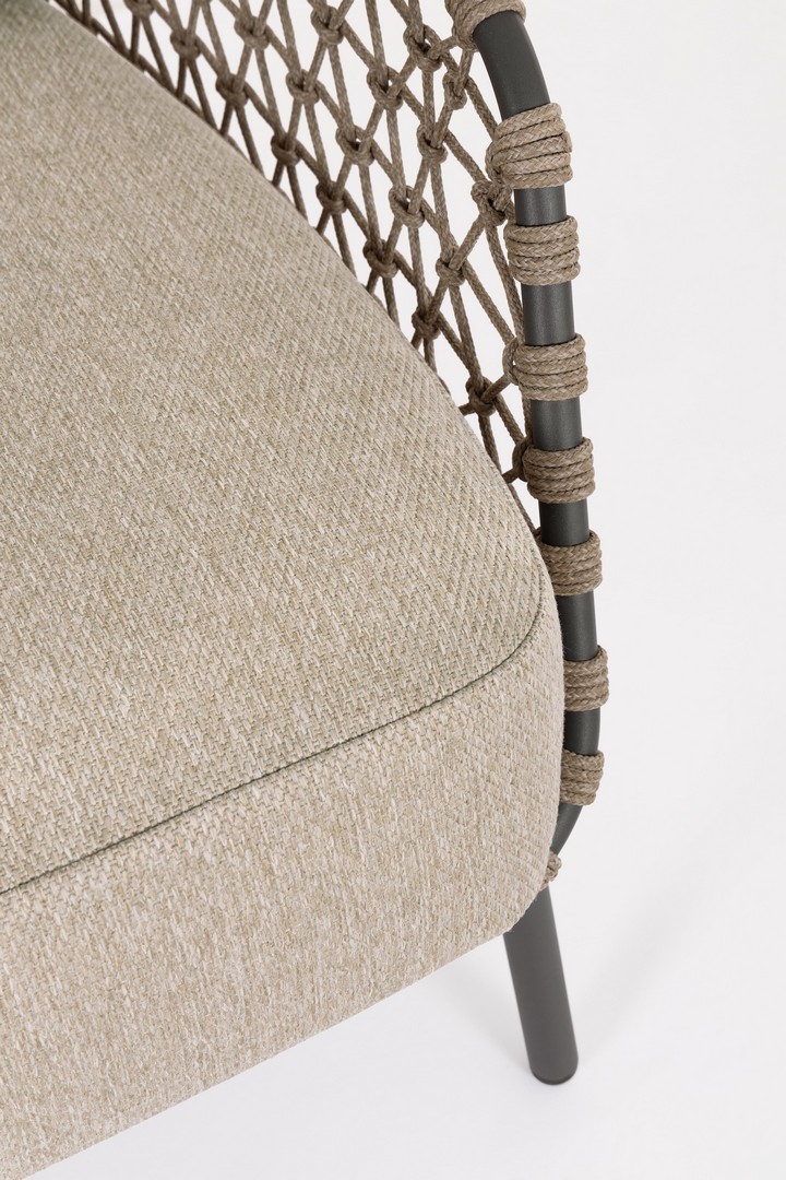 Konštrukcia z nehrdzavejúcej ocele (typ 201). Výplet na vonkajšie použitie z lana (polypropylén). Odnímateľné vankúše s poťahom z vodeodolnej tkaniny Sunproof Olefin (100 % polypropylén).