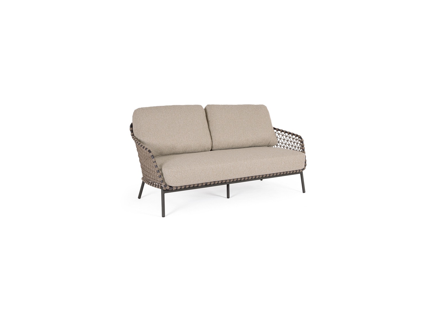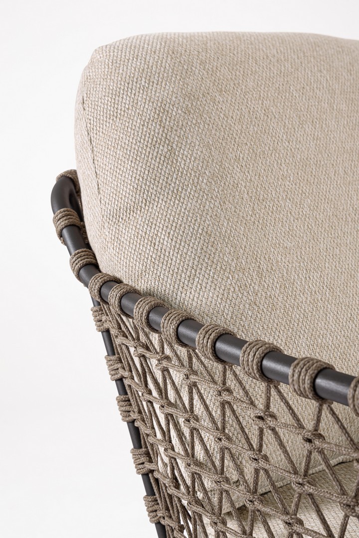 Konštrukcia z nehrdzavejúcej ocele (typ 201). Výplet na vonkajšie použitie z lana (polypropylén). Odnímateľné vankúše s poťahom z vodeodolnej tkaniny Sunproof Olefin (100 % polypropylén).