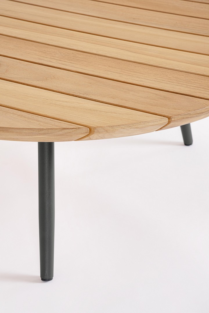 Nohy z nehrdzavejúcej ocele (typ 201). Doska z teakového dreva – SVLK (certifikované drevo z udržateľne obhospodarovaných lesov). Nerezové skrutky.