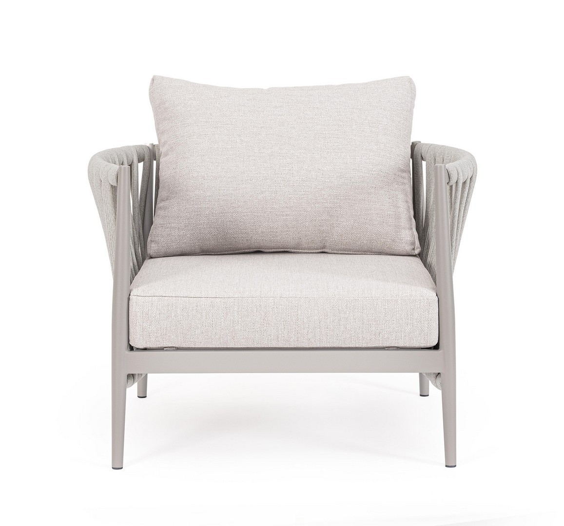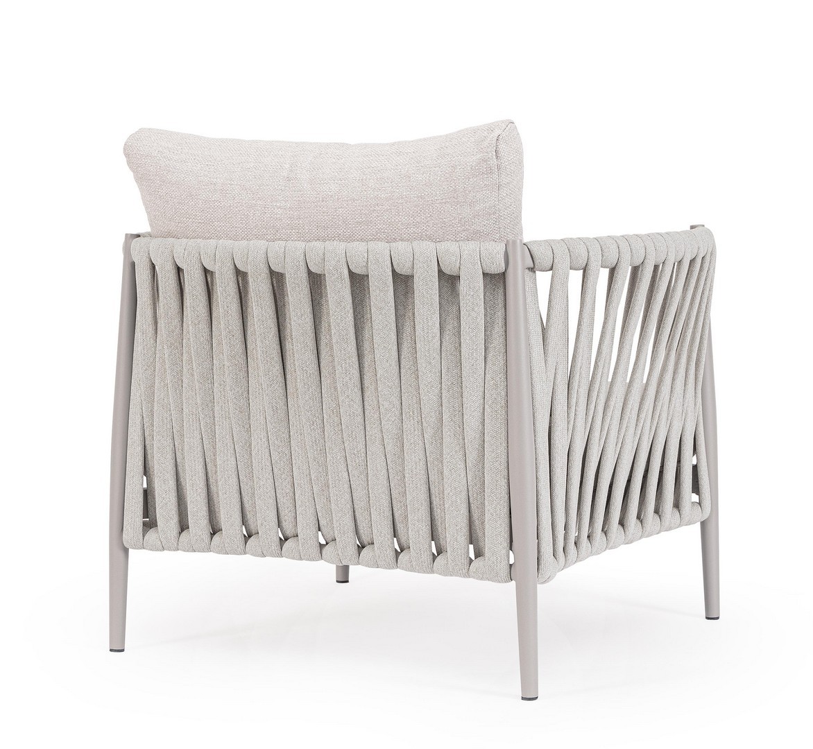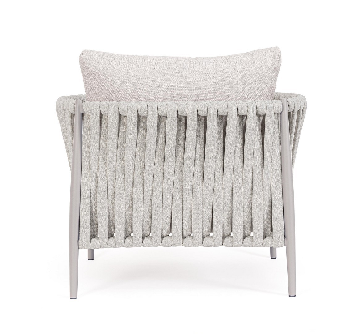 Hliníkový rám s práškovým nástrekom (polyester). Výplet z tetoronového lana (100 % polyester) s gumovou výplňou (polyetylén). Sedák a operadlo s vankúšmi s odnímateľným poťahom z vodeodolnej olefínovej tkaniny (100 % polypropylén).