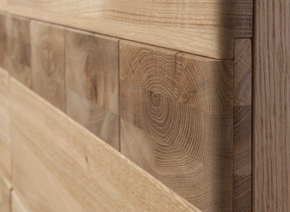 Mnohí ľudia, ktorí majú radi drevený nábytok, sa obávajú o jeho správnu starostlivosť. Drevo sa ľahko poškriabe a môže sa poškodiť prebytočnou vodou. Preto bol korpus komody Fiorino potiahnutý odolnou dyhou a masívne čelá vrstvou ochranného oleja. Vďaka tomu je drevená komoda odolná voči poškriabaniu a ľahko sa udržiava v čistote.