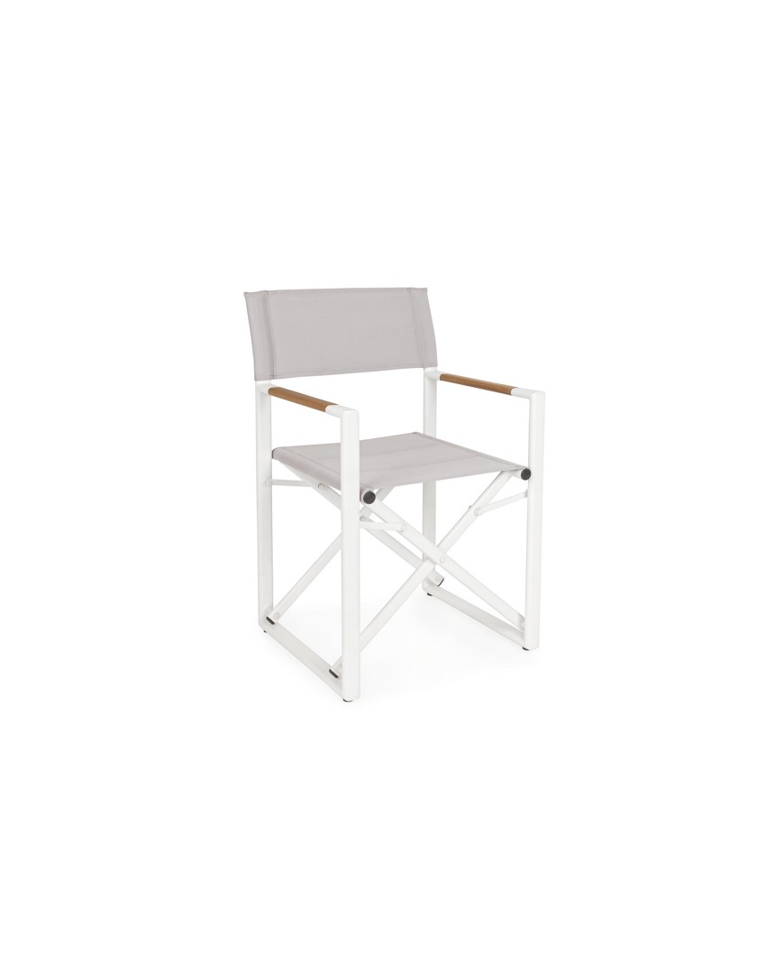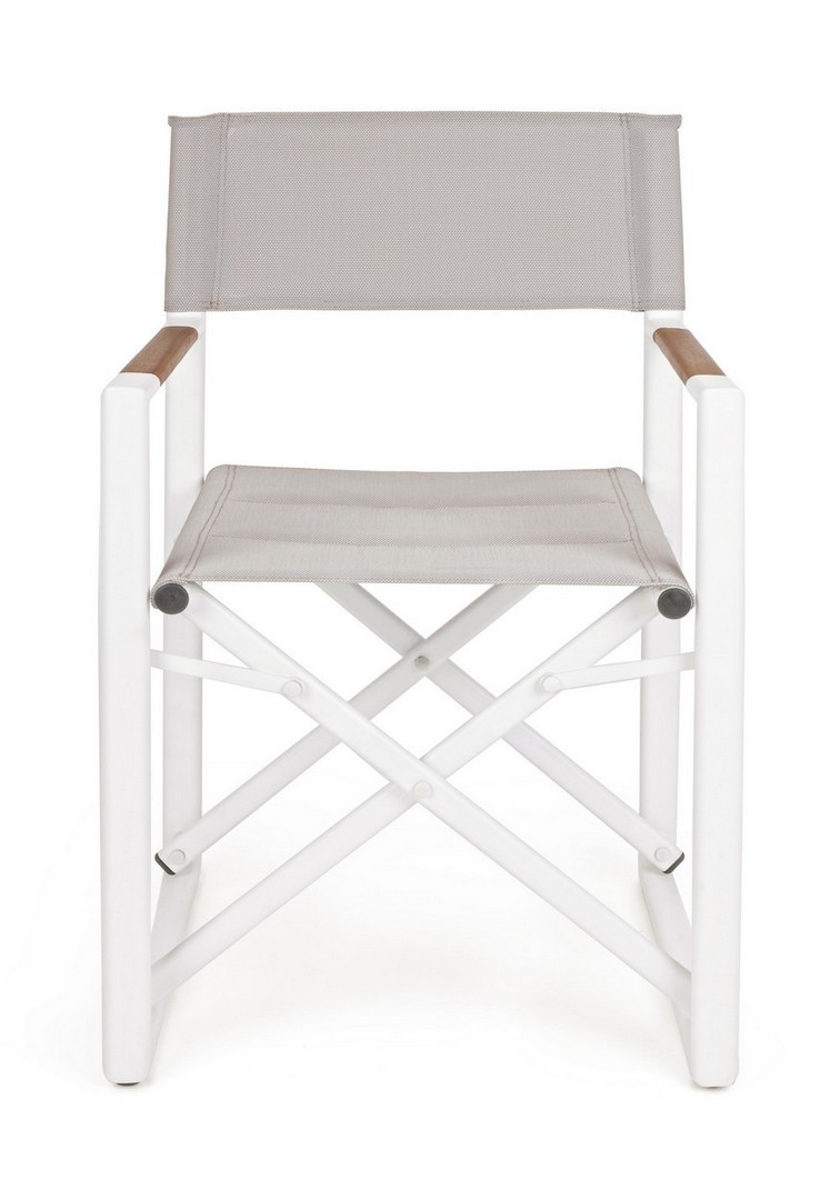 Hliníkový rám s práškovou povrchovou úpravou (polyester). Sedadlo a operadlo z textilénu 2×2 (680 g/m²). Opierky rúk s vložkami z tíkového dreva. Spojovací materiál z nehrdzavejúcej ocele.