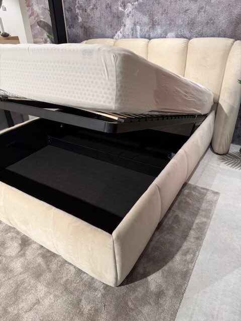 Posteľ je štandardne vybavená úložným priestorom na posteľnú bielizeň a zdvíhacím kovovým rámom s 24 lamelami na každej strane, čo je spolu 48 lamiel. Cena postele nezahŕňa matrac.