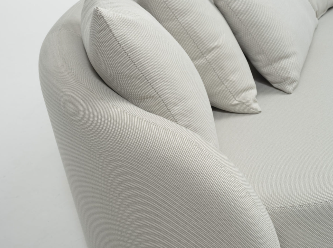 Hliníkový rám dopĺňajú čierne plastové nohy. Textilný poťah z tkaniny Axroma v krémovej farbe je odolný voči poveternostným vplyvom. Vďaka drenážnemu krytu pod poťahom nie je možný prienik vody do peny. Výrobok je 100% odolný voči poveternostným vplyvom.