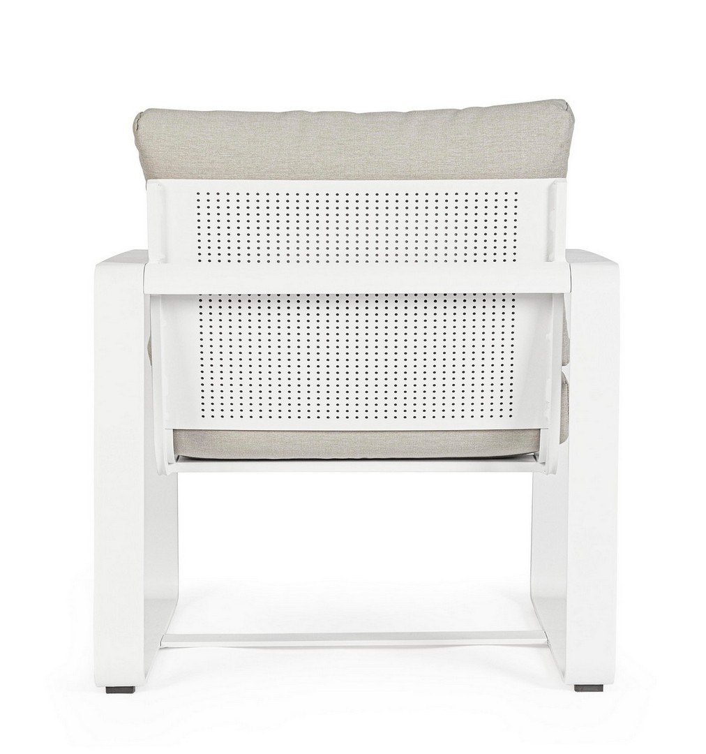 Práškovaná hliníková konštrukcia (polyester). Sedáky a operadlá s odnímateľným poťahom z olefínovej tkaniny (100 % polypropylén).
