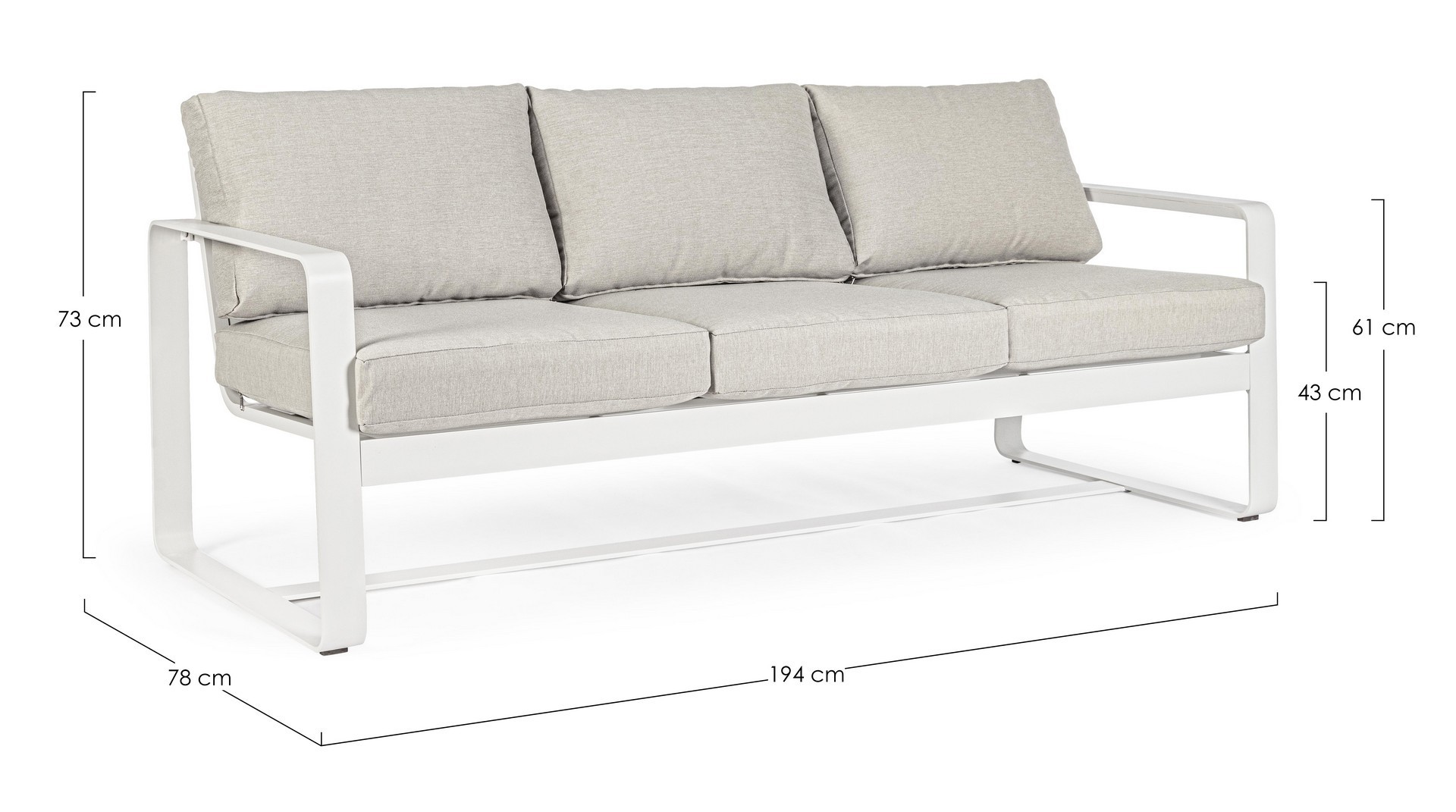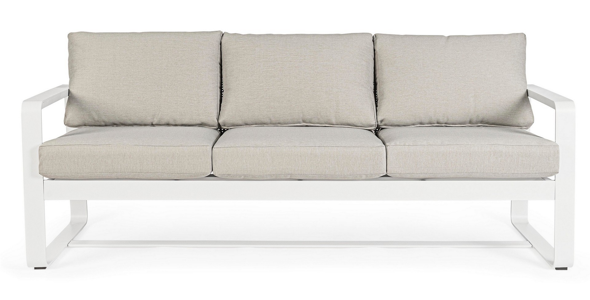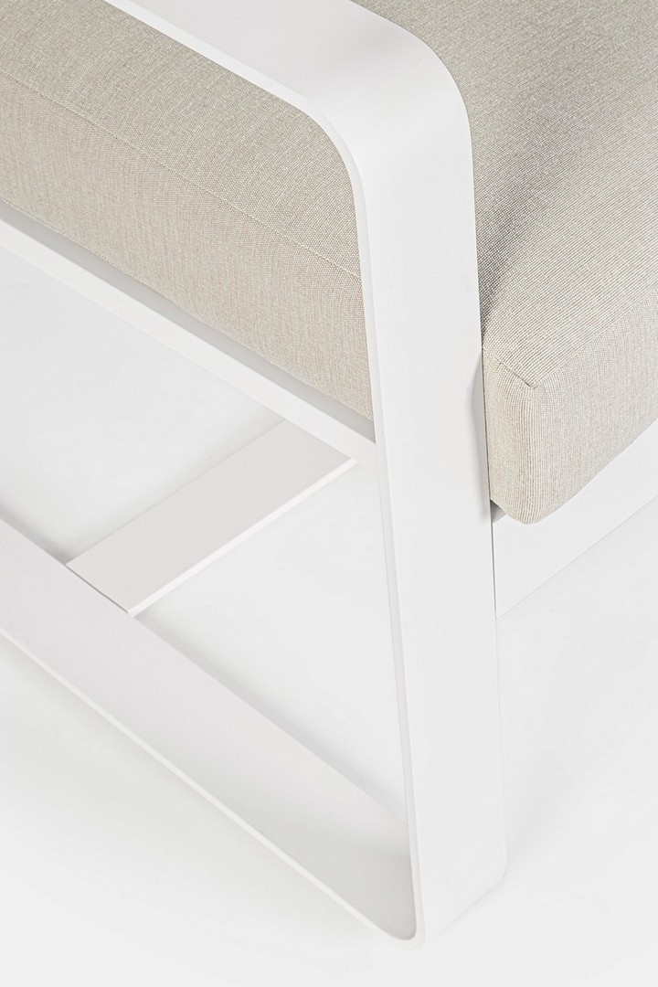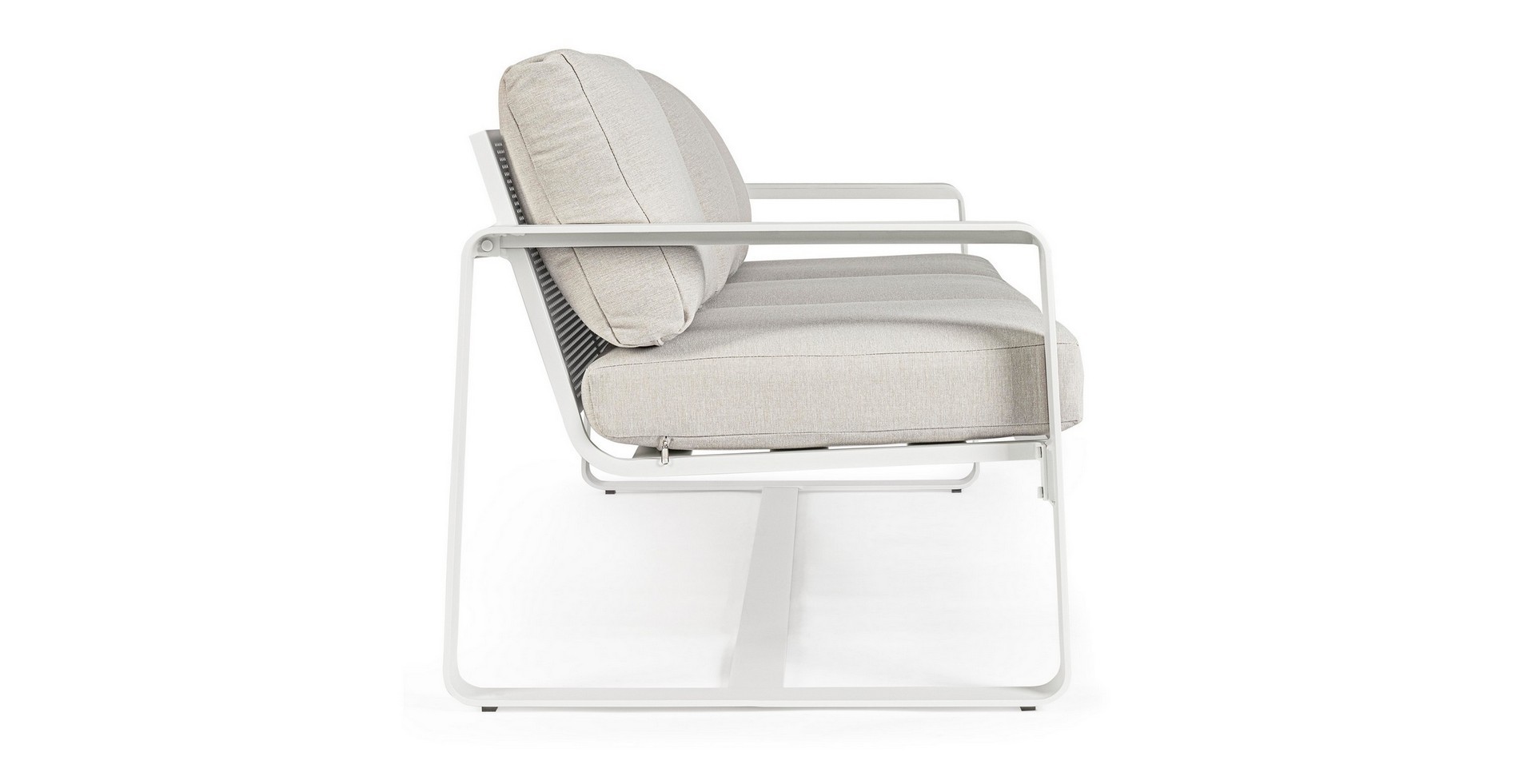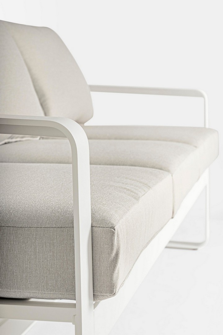 Práškovaná hliníková konštrukcia (polyester). Sedáky a operadlá s odnímateľným poťahom z vodeodolnej tkaniny olefín (100 % polypropylén).