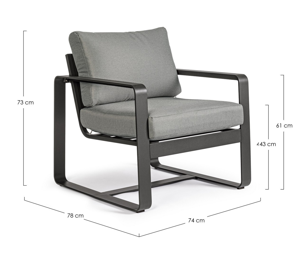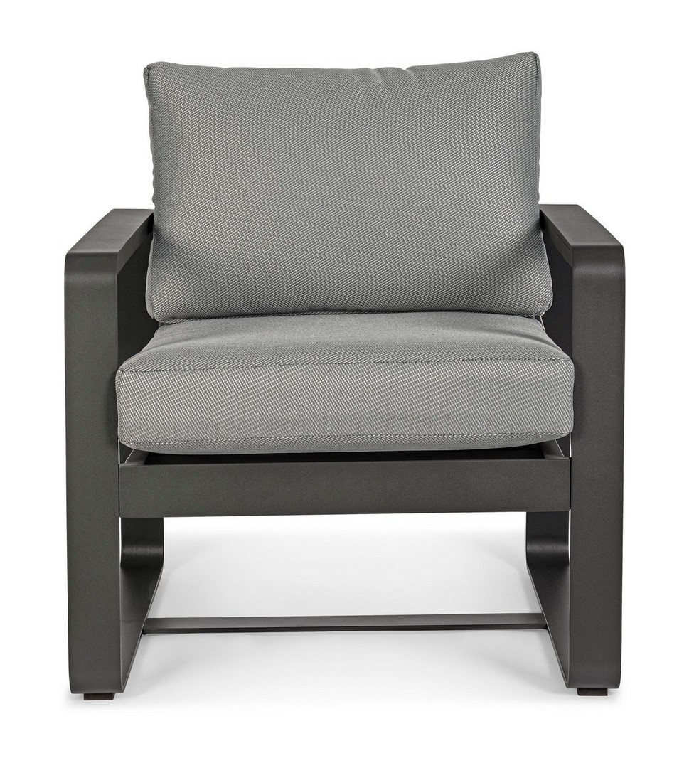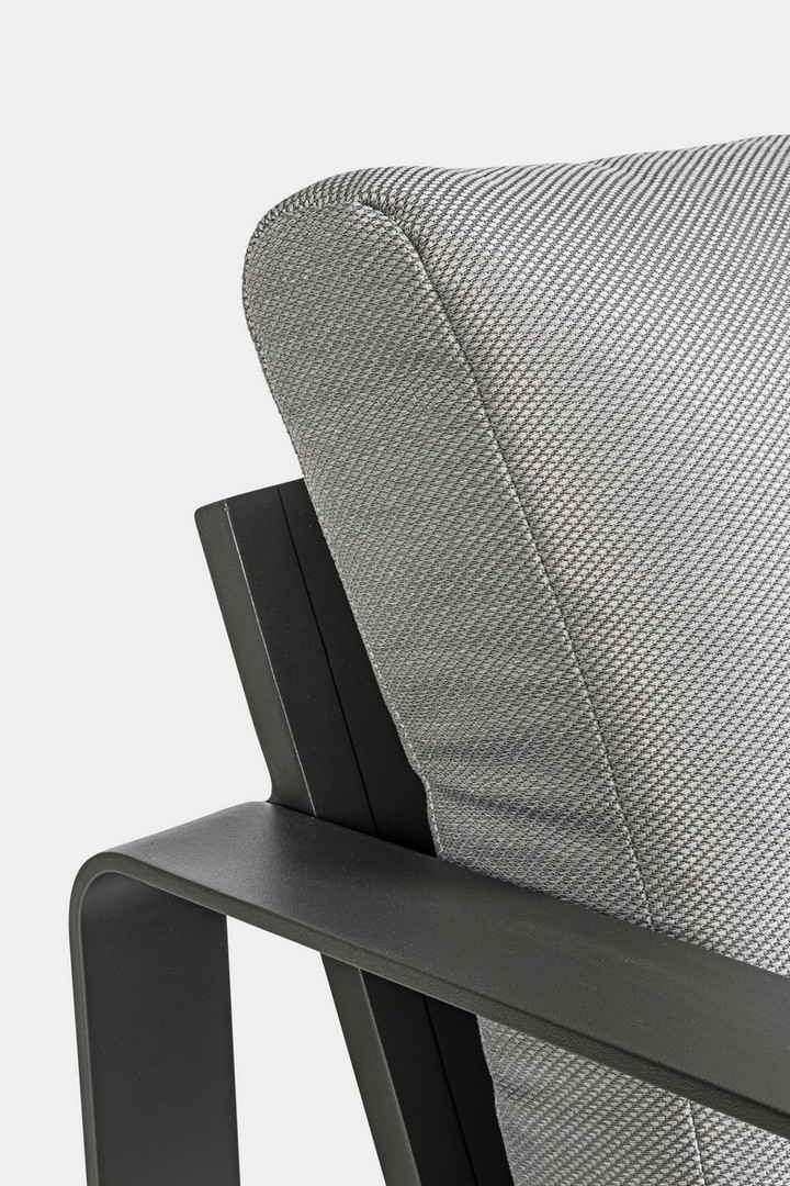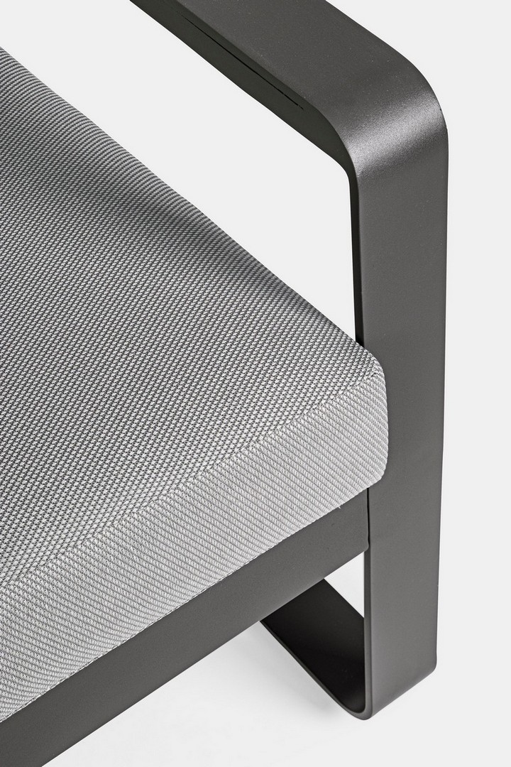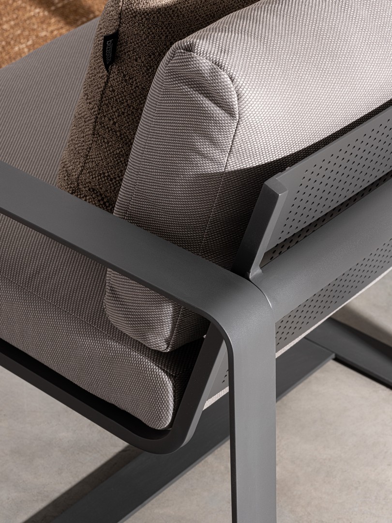 Práškovaná hliníková konštrukcia (polyester). Sedáky a operadlá s odnímateľným poťahom z olefínovej tkaniny (100 % polypropylén).