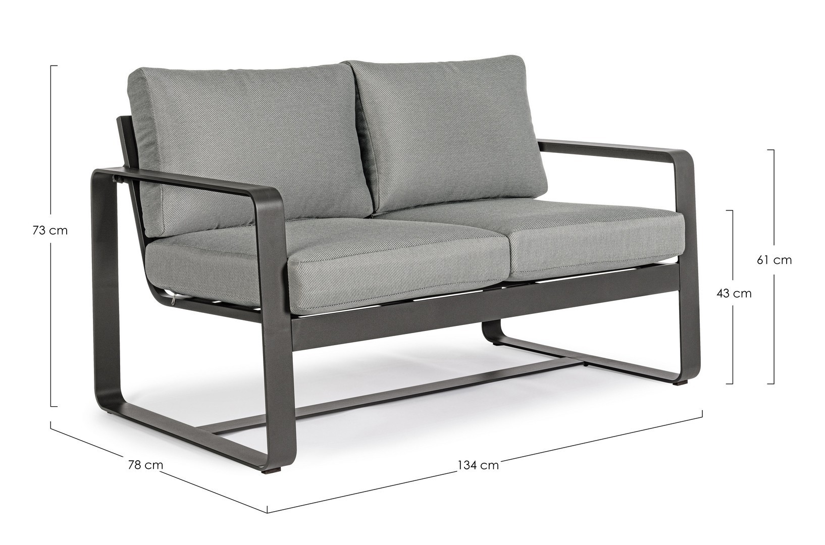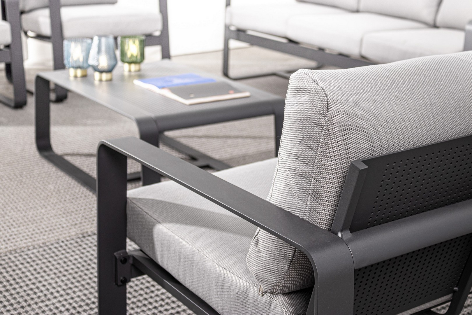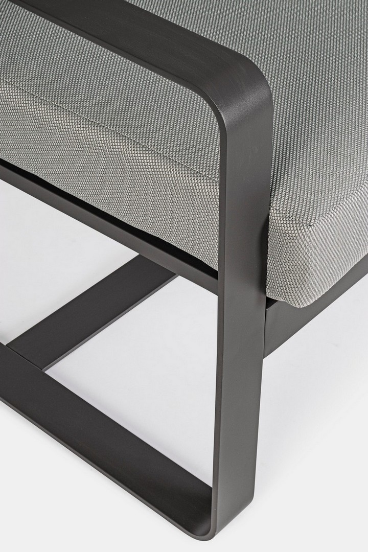 Práškovaná hliníková konštrukcia (polyester). Sedáky a operadlá s odnímateľným poťahom z vodeodolnej tkaniny olefín (100 % polypropylén).