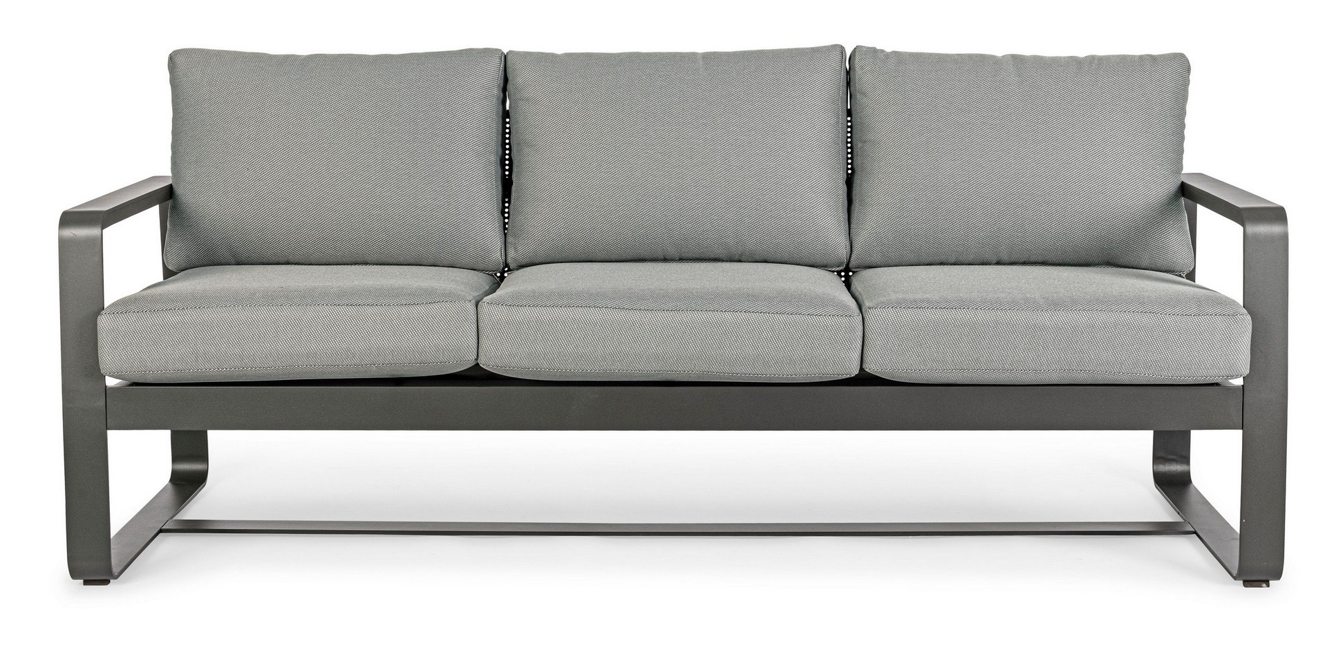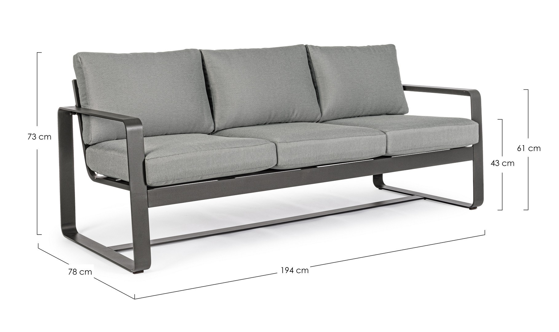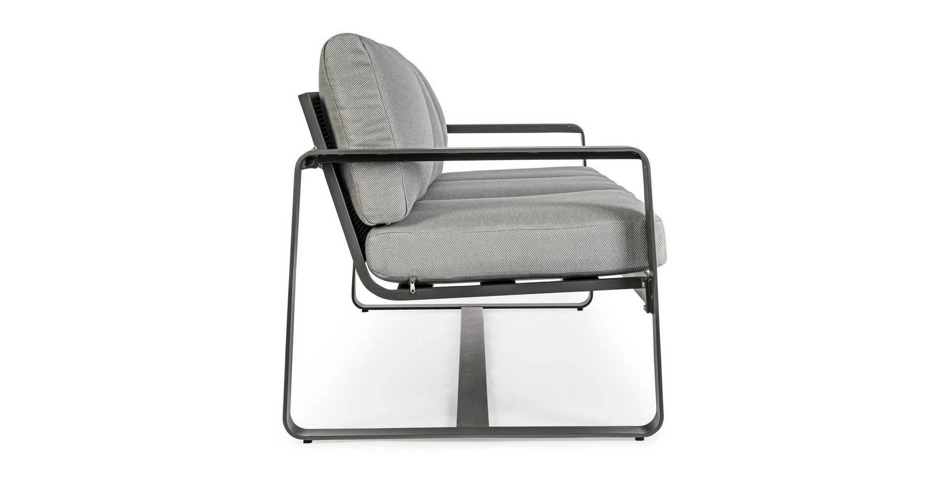 Práškovaná hliníková konštrukcia (polyester). Sedáky a operadlá s odnímateľným poťahom z vodeodolnej tkaniny olefín (100 % polypropylén).