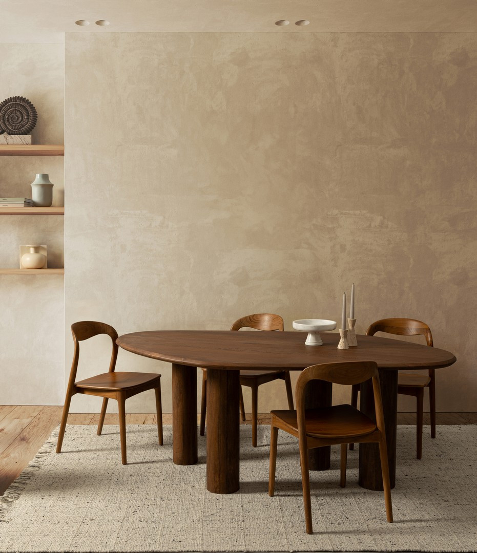 Teakové drevo, prírodná povrchová úprava nitrocelulózovou farbou.