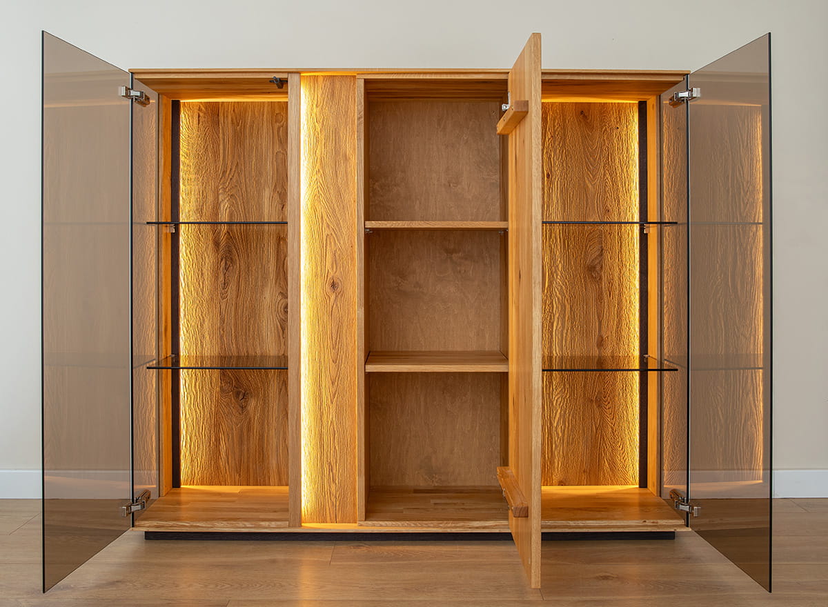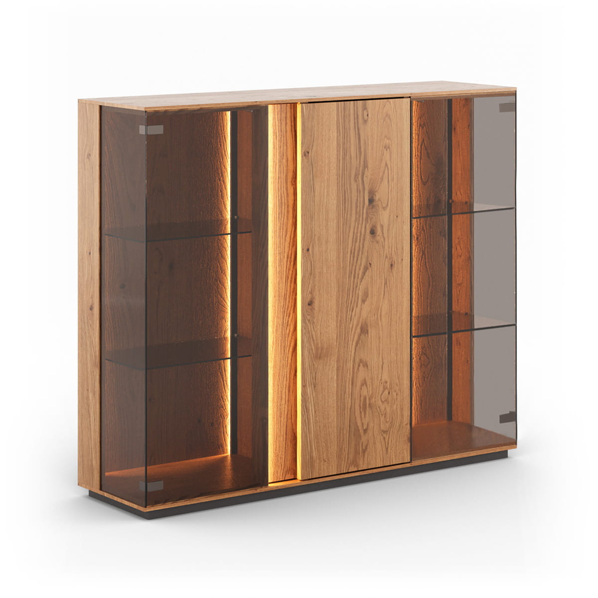 Pridať do sledovača cienNízka sklenená vitrína z olejovaného dubového dreva Collodi