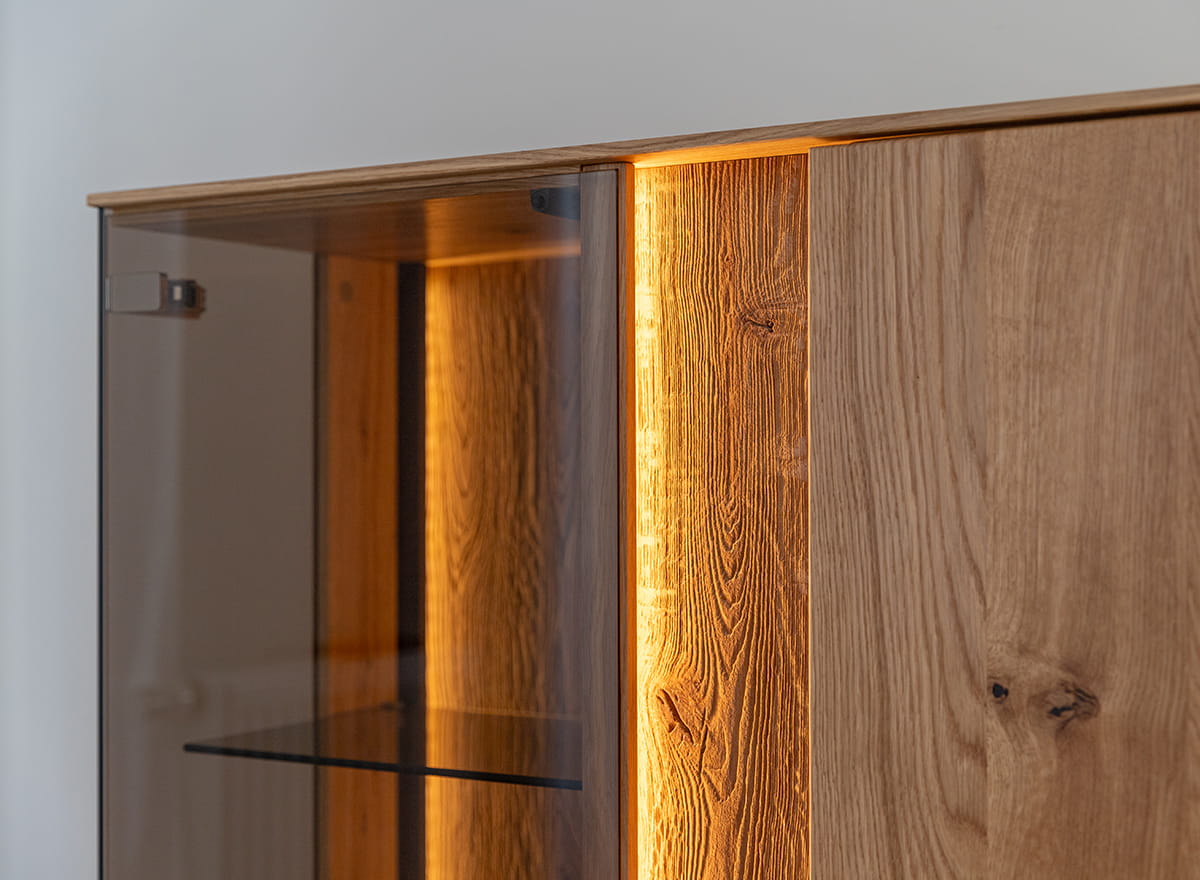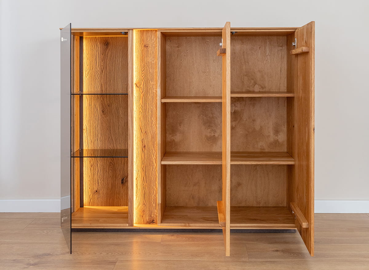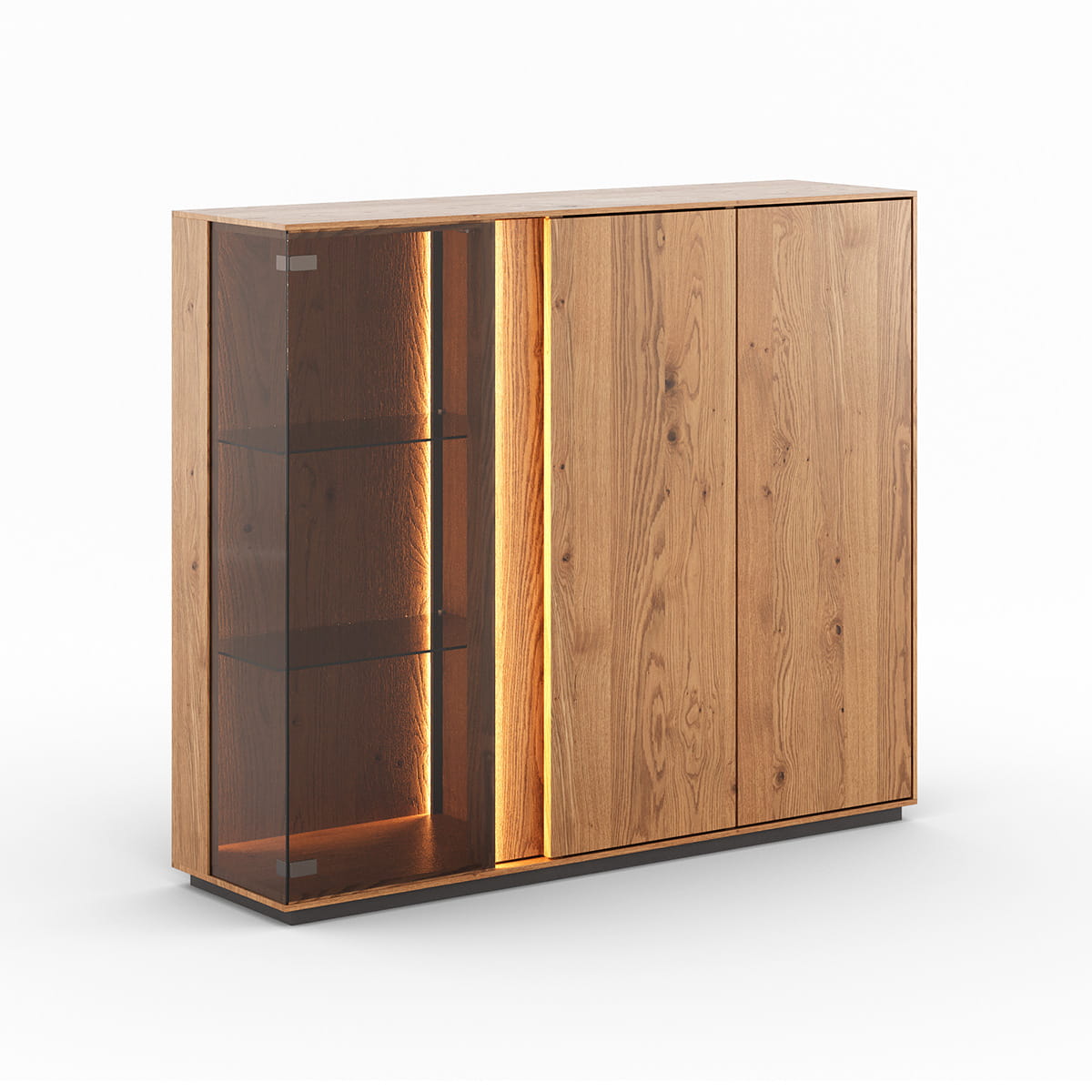 Pridať do sledovača cienNízka vitrína 3D s presklením z masívu dubu Collodi