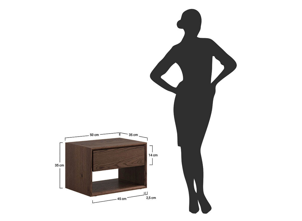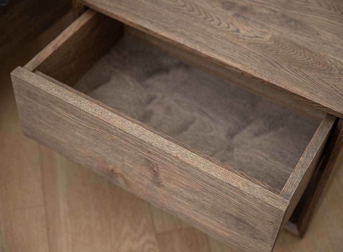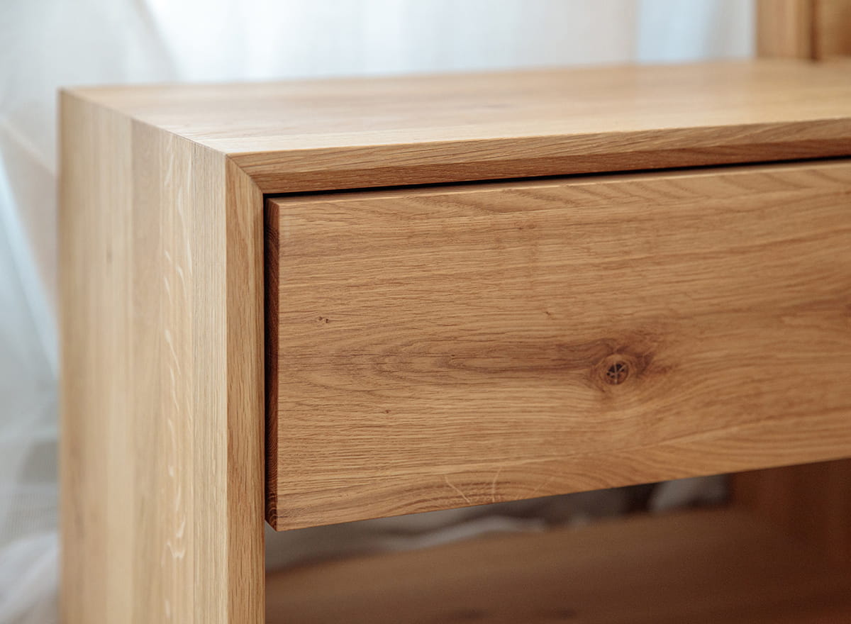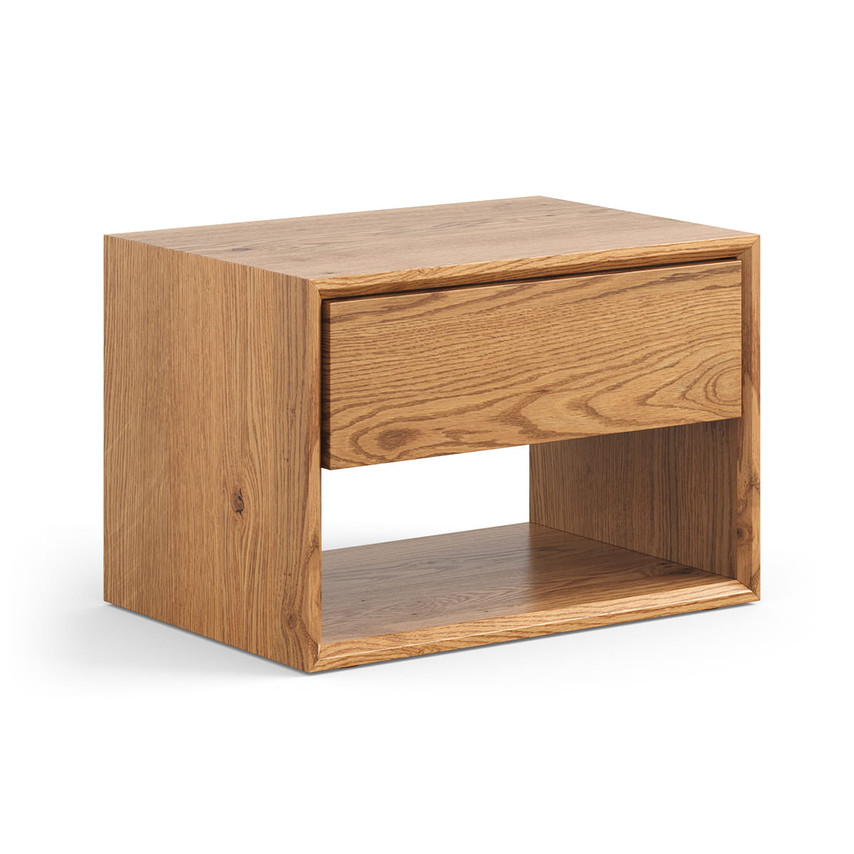 Pridať do sledovača cienDubový nočný stolík je dokonalým doplnkom postele zo série Adria. Je estetický, loftový, priestranný a pohodlný na používanie. Skvele doplní priestor spálne v industriálnom štýle. Ide o veľmi šikovný kus nábytku, ktorý zvýši komfort pri ležaní v posteli. Jednoduché telo stolíka je vybavené priestrannou zásuvkou, do ktorej môžete uložiť drobnosti. V spodnej časti je ďalšia polica a druhá je horná časť stolíka, na ktorú stojí za to umiestniť nočnú lampu.