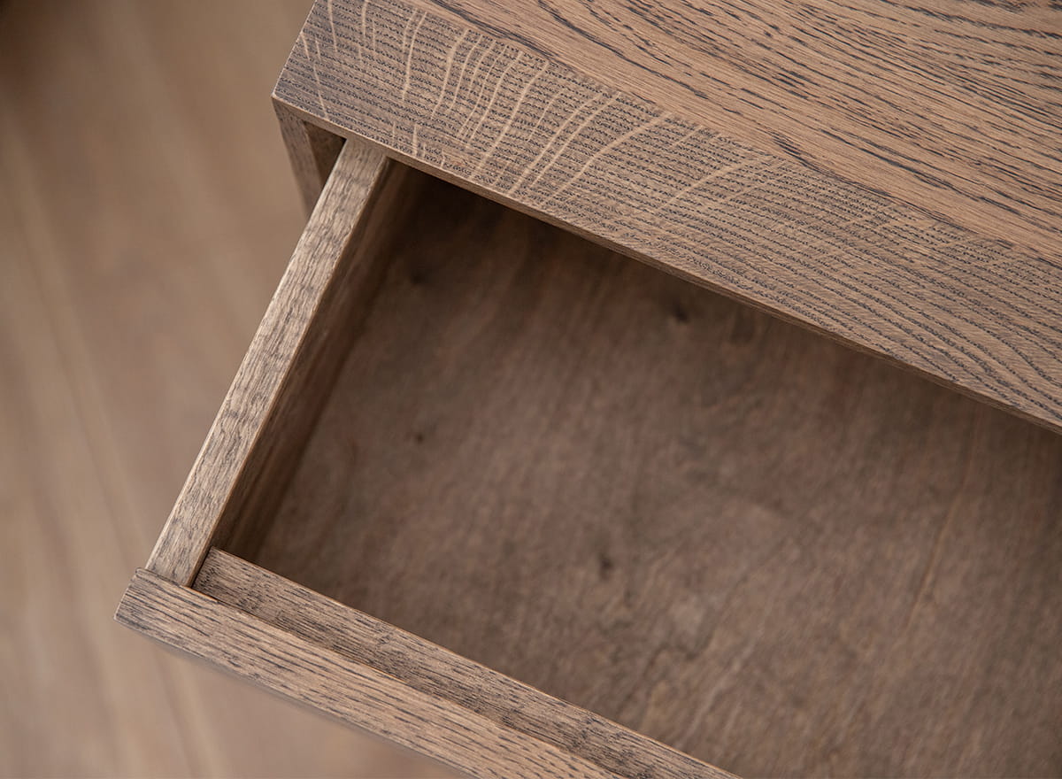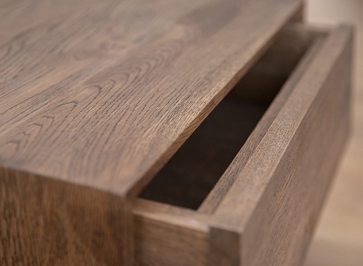 Pridať do sledovača cienDubový nočný stolík zo série Adria je závesný kus nábytku, vďaka ktorému je jeho konštrukcia vizuálne extrémne ľahká. Je vybavený priestrannou zásuvkou na uloženie drobností a vrchnou doskou, na ktorú môžete postaviť malú nočnú lampičku a odložiť knihu, ktorú čítate pred spaním. Bez tradičných nôh nočný stolík pôsobí levitujúcim dojmom nad podlahou, čo je moderné riešenie, ktoré ladí s minimalistickým, industriálnym a loftovým štýlom.