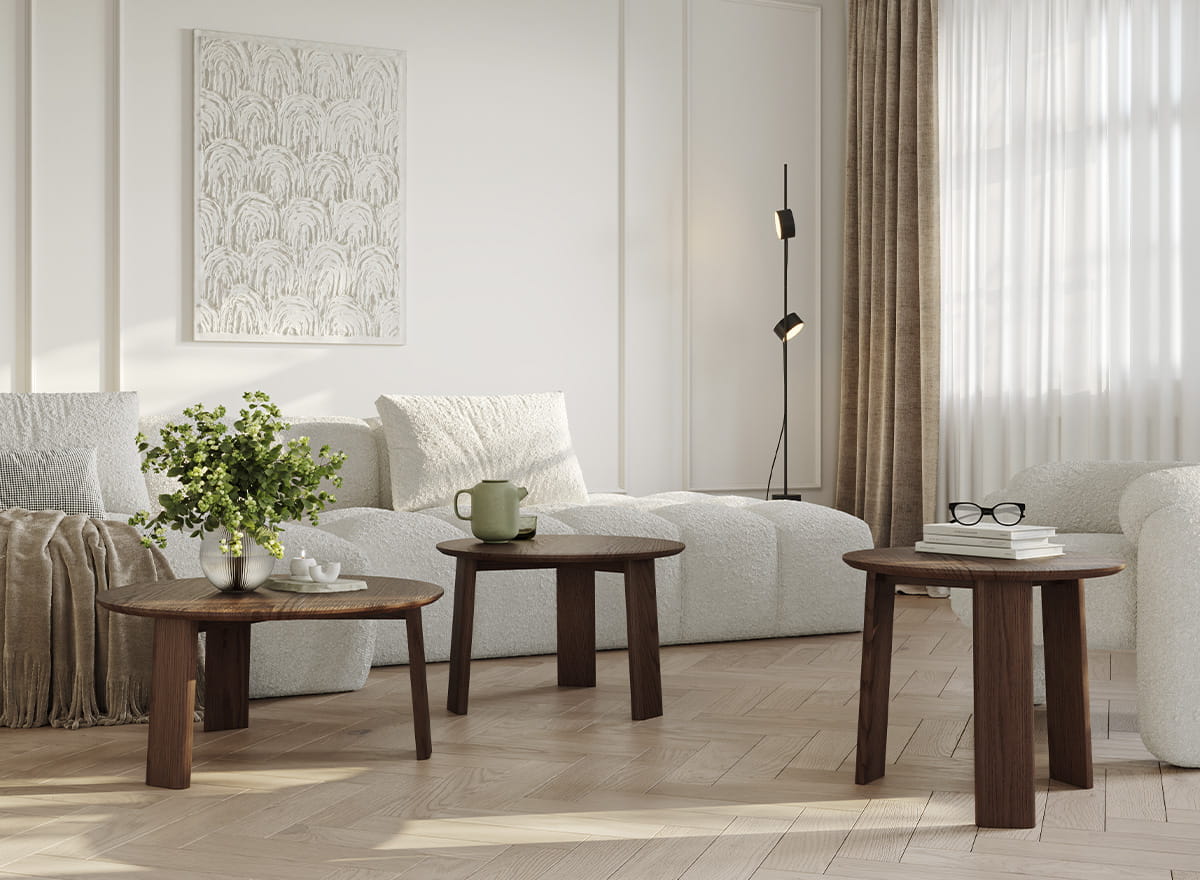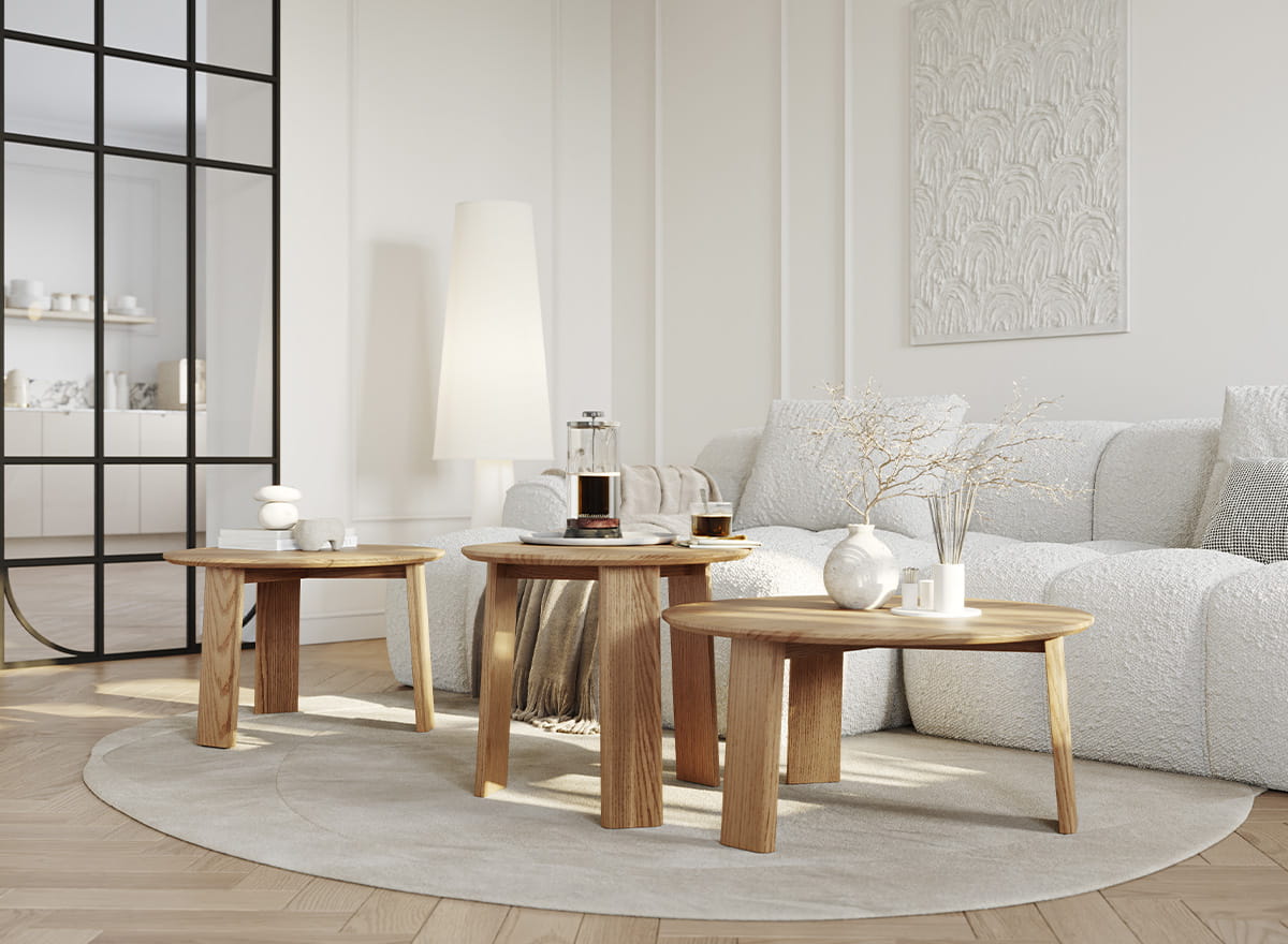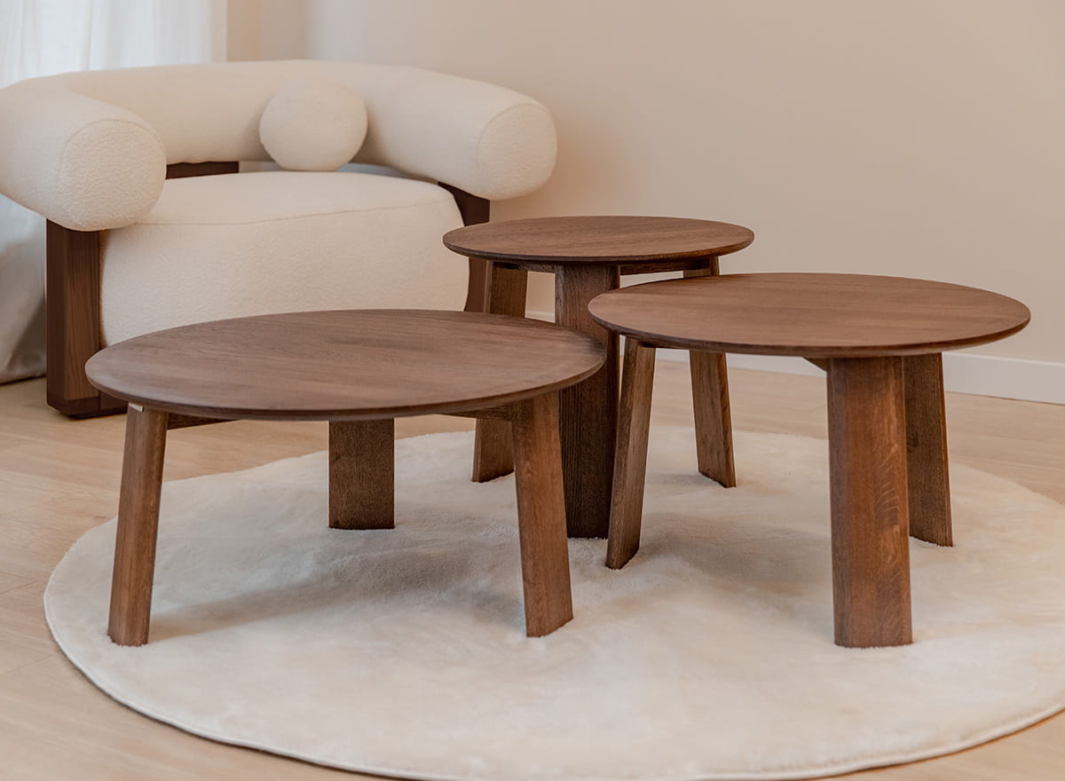 V obývacej izbe sa dubový konferenčný stolík z kolekcie Monti stane miestom stretnutí – široká doska pojme nielen šálky a taniere s občerstvením, ale aj všetky tie drobné doplnky, ktoré vytvárajú atmosféru večera stráveného s rodinou a priateľmi. V spálni ho možno použiť ako príručný stolík na umiestnenie obľúbených kníh, sviečok alebo aj malých rastlín v kvetináčoch či vázach. Vďaka väčšiemu priemeru je vhodný aj na centrálne miesta v miestnosti – tam, kde potrebujete trochu viac priestoru, ale nechcete prísť o útulnú atmosféru.