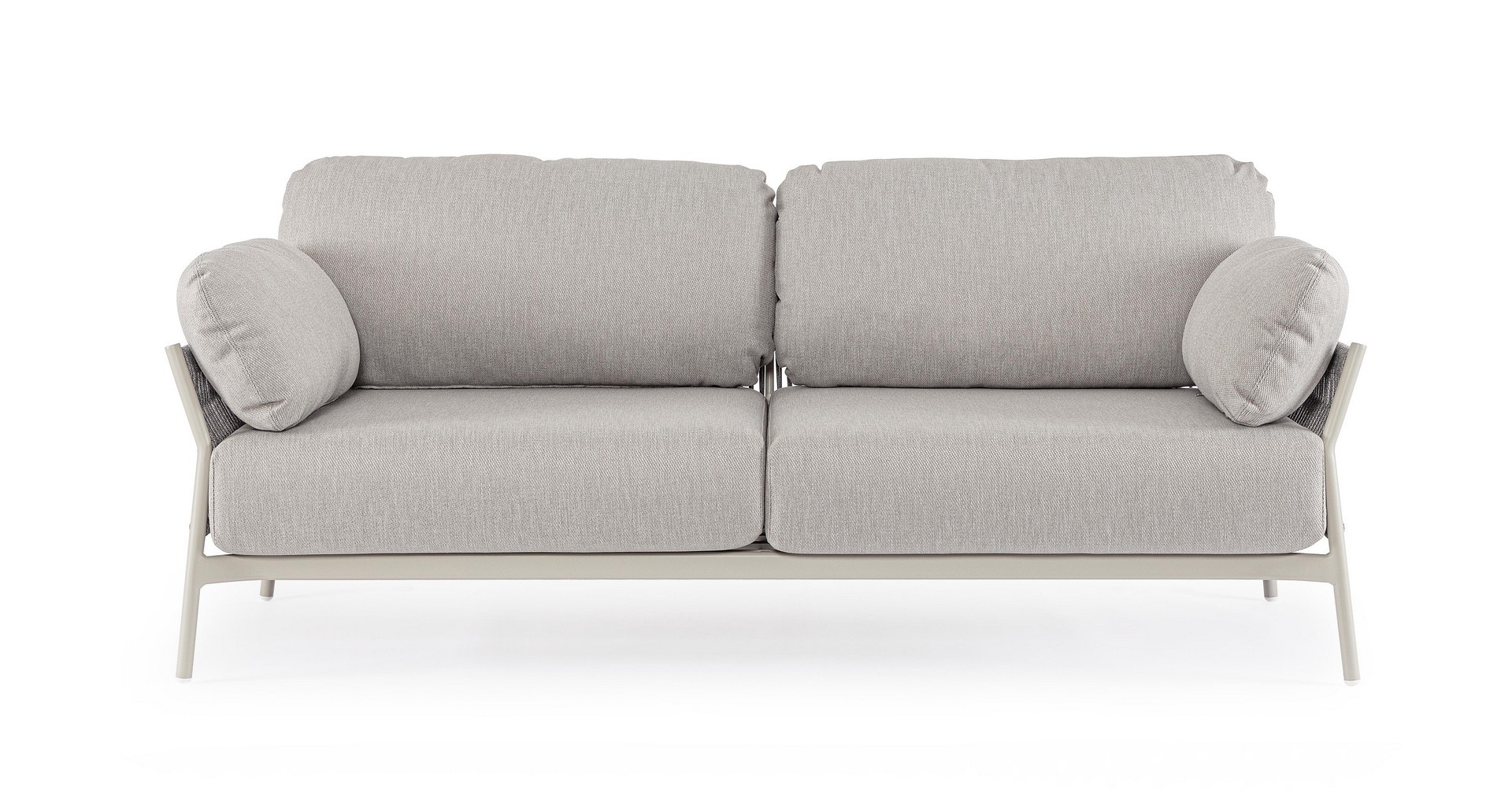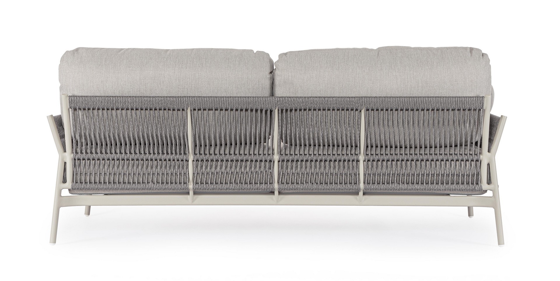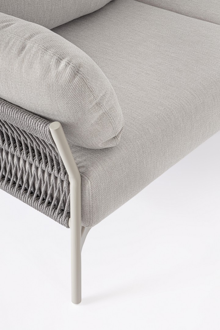Hliníkový rám s práškovým nástrekom (polyester). Výplet z lana z olefínovej tkaniny (100 % polypropylén). Sedáky a operadlá s vankúšmi s odnímateľným poťahom z vodeodolnej olefínovej tkaniny (100 % polypropylén).