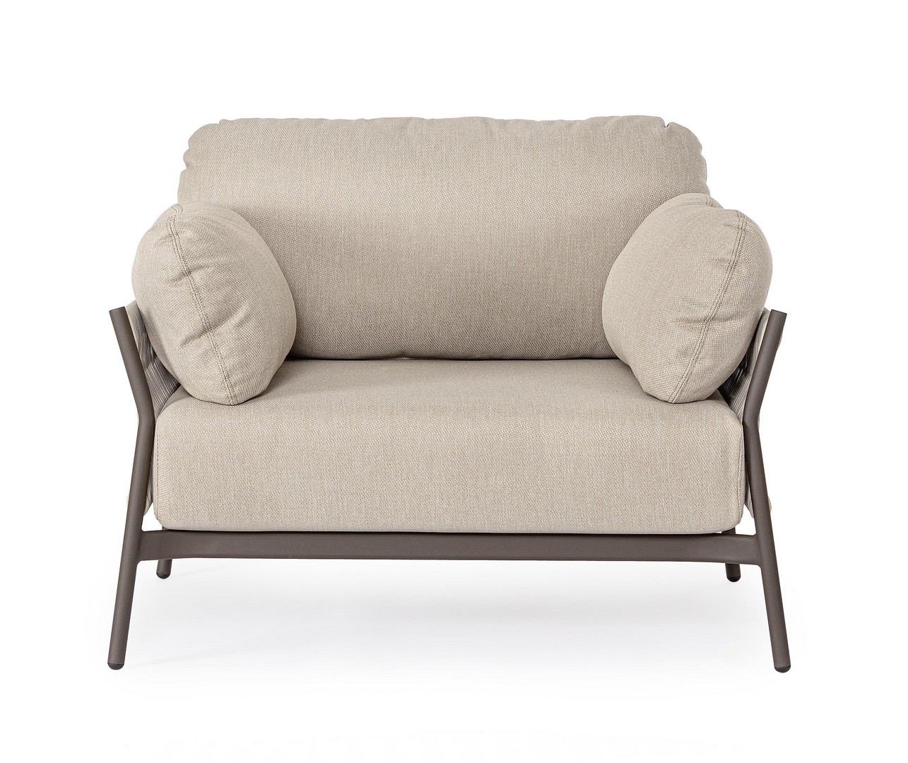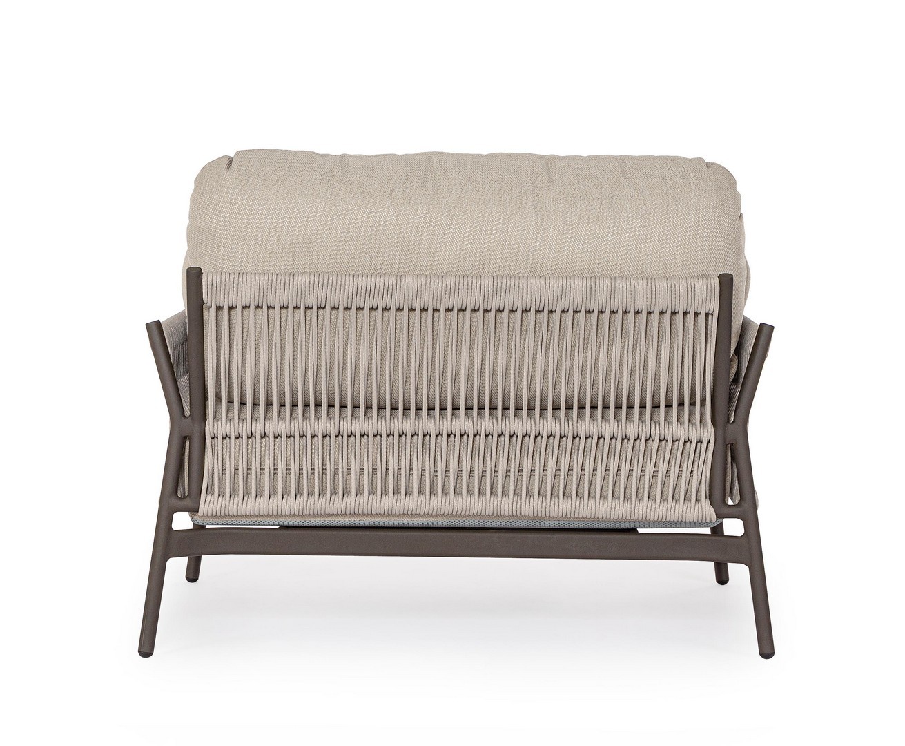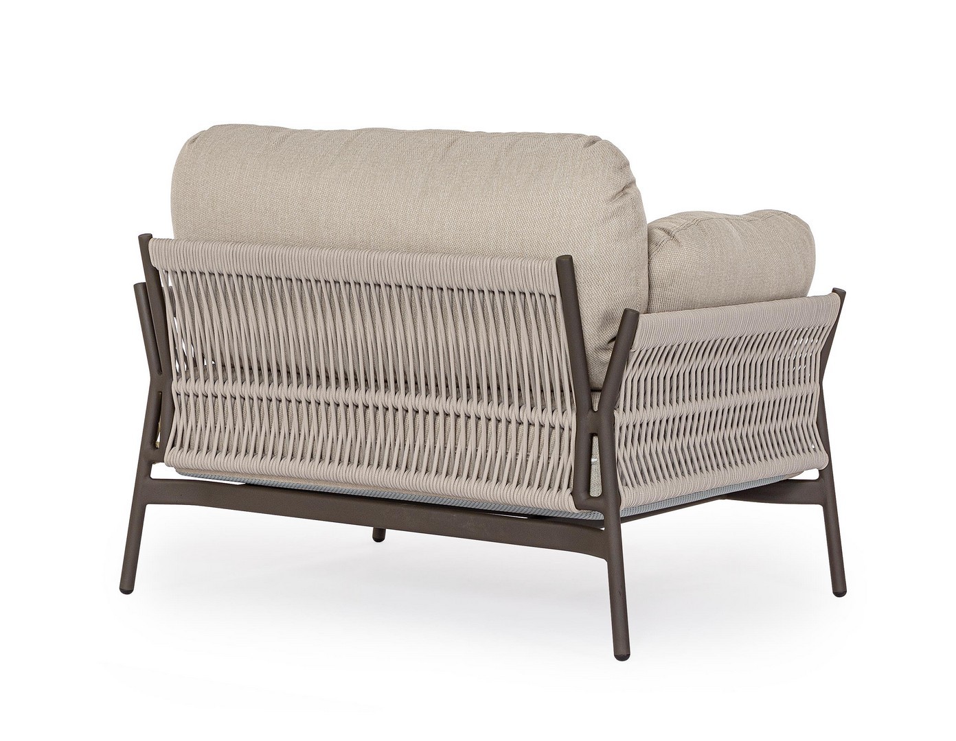 Hliníkový rám s práškovým nástrekom (polyester). Výplet z lana z olefínovej tkaniny (100 % polypropylén). Sedáky a operadlá s vankúšmi s odnímateľným poťahom z vodeodolnej olefínovej tkaniny (100 % polypropylén).