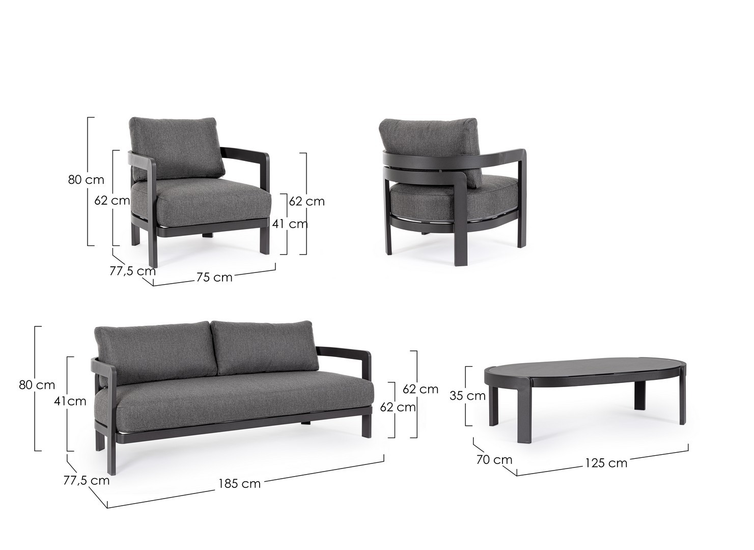 2sed – 185 x 77,5 x V80cm