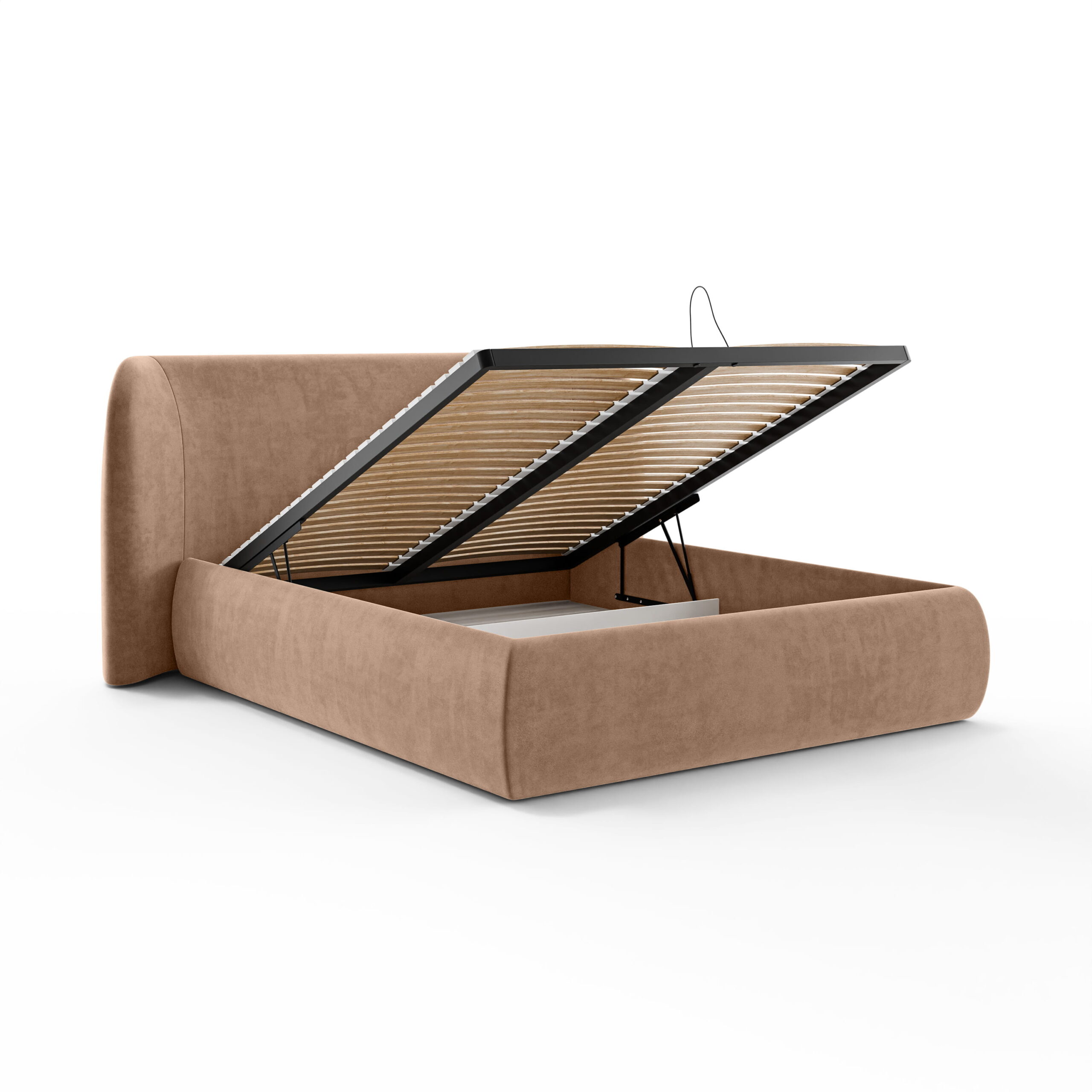 Posteľ je štandardne vybavená úložným priestorom na posteľnú bielizeň a zdvíhacím kovovým rámom s 24 lamelami na každej strane, čo je spolu 48 lamiel. Cena postele nezahŕňa matrac.