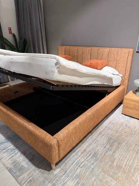 Posteľ je štandardne vybavená úložným priestorom na posteľnú bielizeň a zdvíhacím kovovým rámom s 24 lamelami na každej strane, čo je spolu 48 lamiel. Cena postele nezahŕňa matrac.