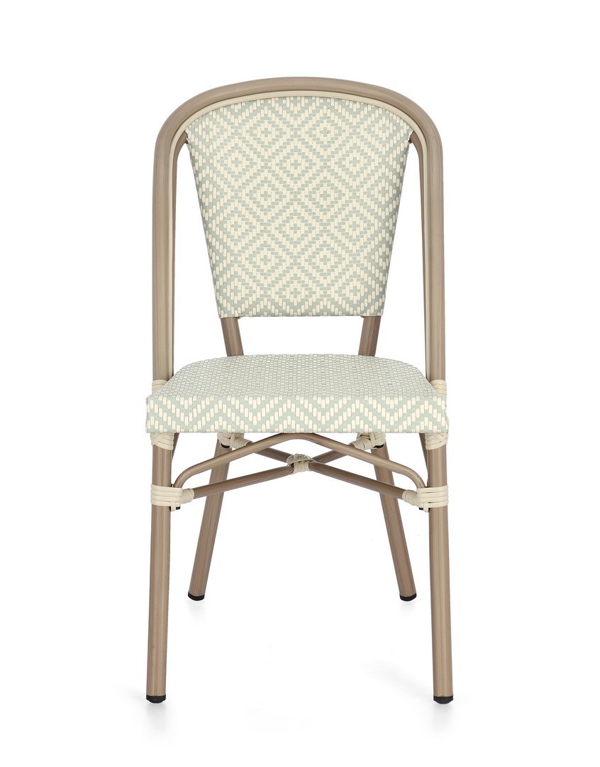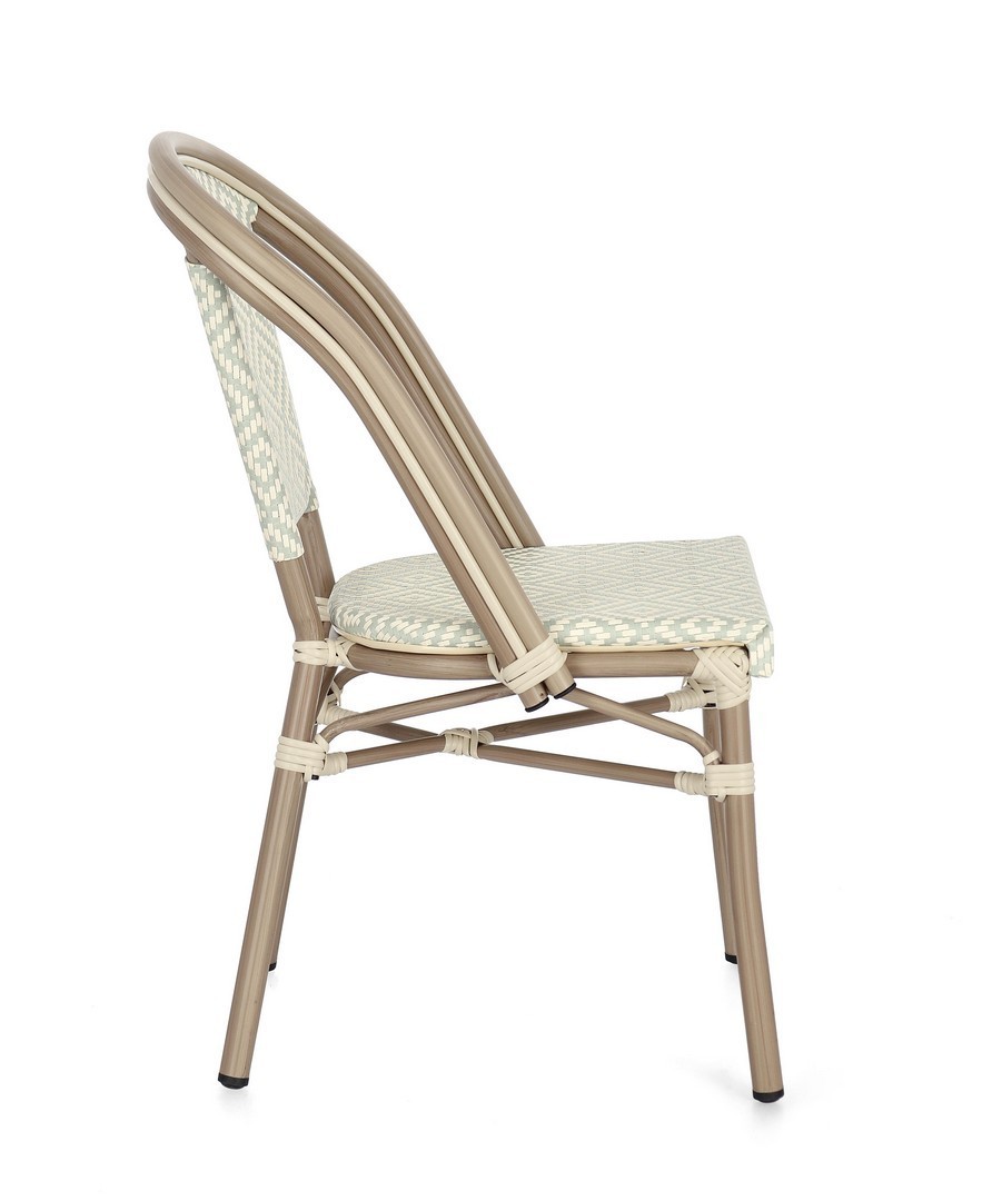 Konštrukcia z hliníka s práškovou povrchovou úpravou (polyester), s prírodným efektom. Sedadlo a operadlo z textilénu.