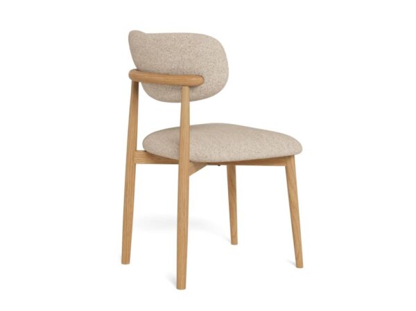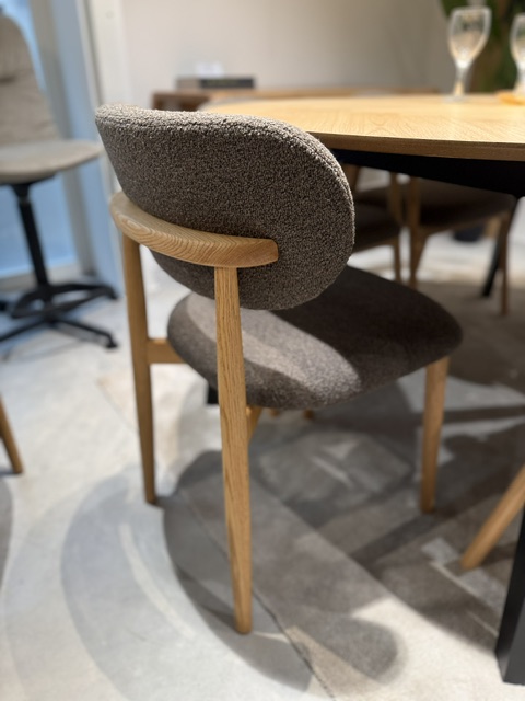 Pridať do sledovača cienTáto jedálenská stolička vyniká svojím robustným dizajnom, ktorý nesie výraznú, no zároveň príťažlivú energiu, vďaka čomu je ideálnym doplnkom do jedálne. Stolička s robustnými lakovanými dubovými nohami a elegantnou látkou buklé ponúka textúrovaný, prírodný vzhľad, ktorý sa hodí do každej scény. Odkrytý rám v zadnej časti dodáva jemný efekt „wow“.
