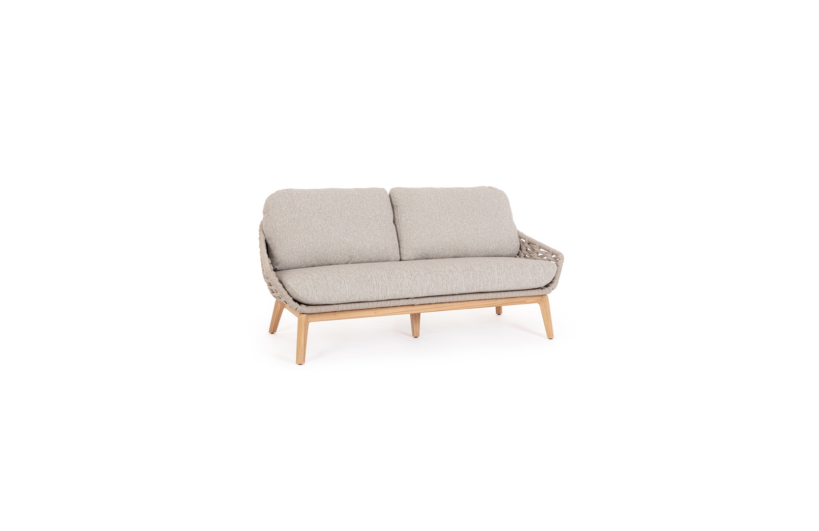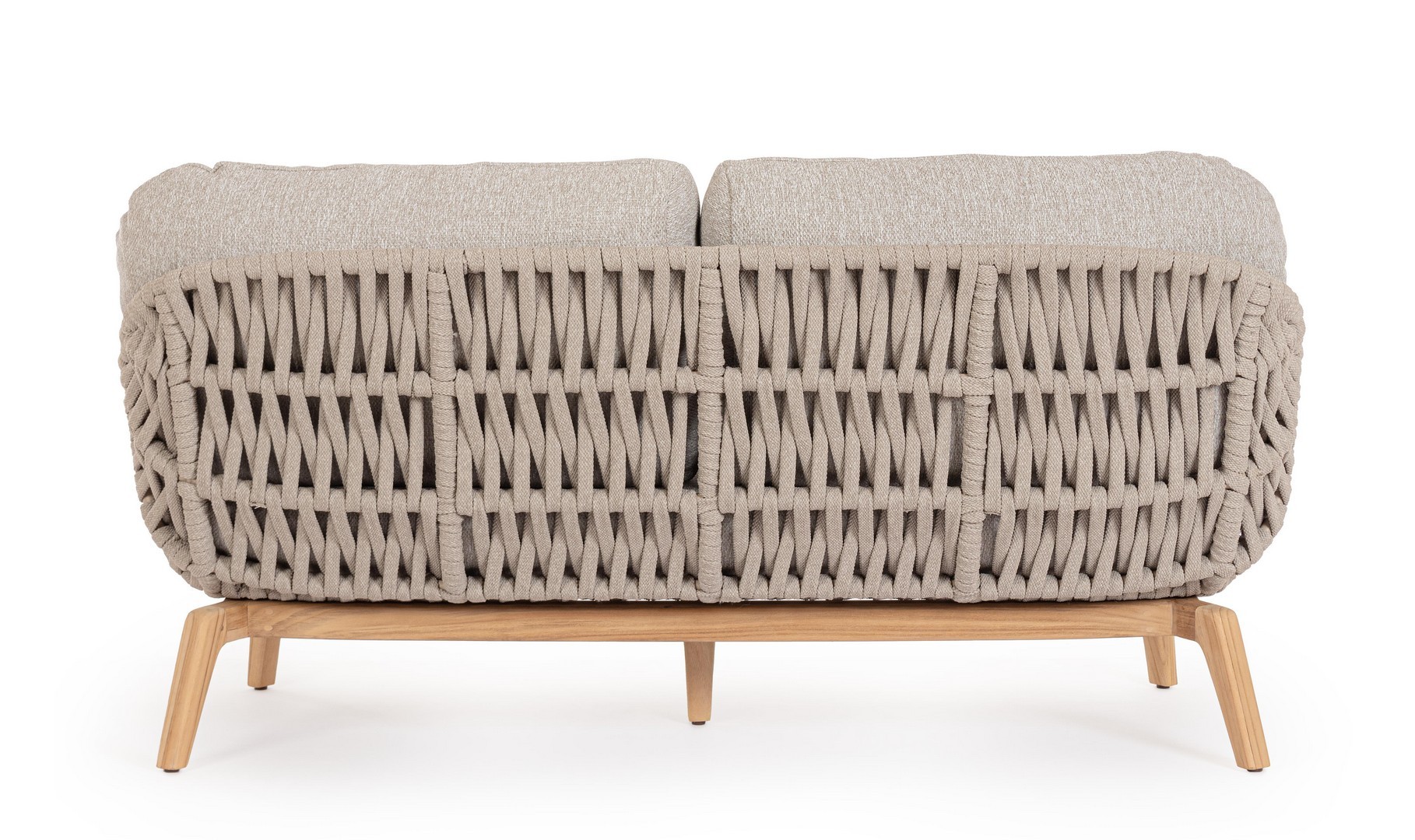 Hliníkový rám s práškovým nástrekom (polyester). Nohy z teakového dreva – SVLK (indonézske legálne drevo). Výplet na vonkajšie použitie z lana (polypropylén). Vankúš s odnímateľným poťahom z tkaniny Sunproof Olefin (100 % polypropylén). Nerezové skrutky.