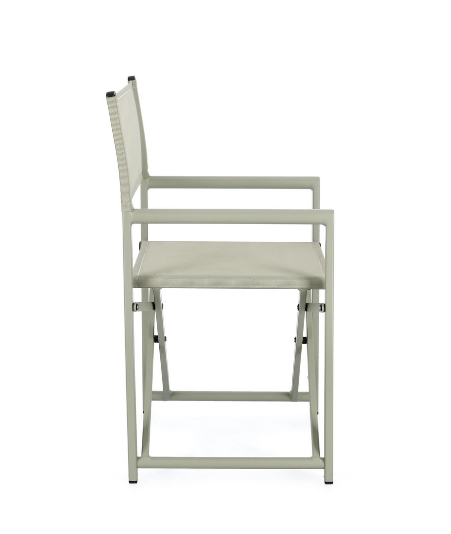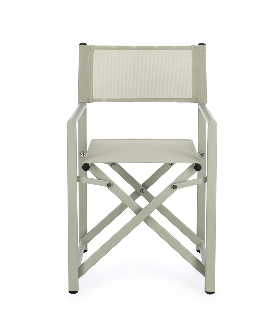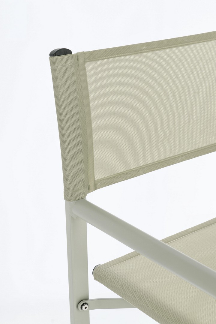 Hliníkový rám s práškovou povrchovou úpravou (polyester). Sedadlo a operadlo z textilénu 2×1 (610 g/m²), s tepelne zváranými švami. Galvanizovaný oceľový spojovací materiál.