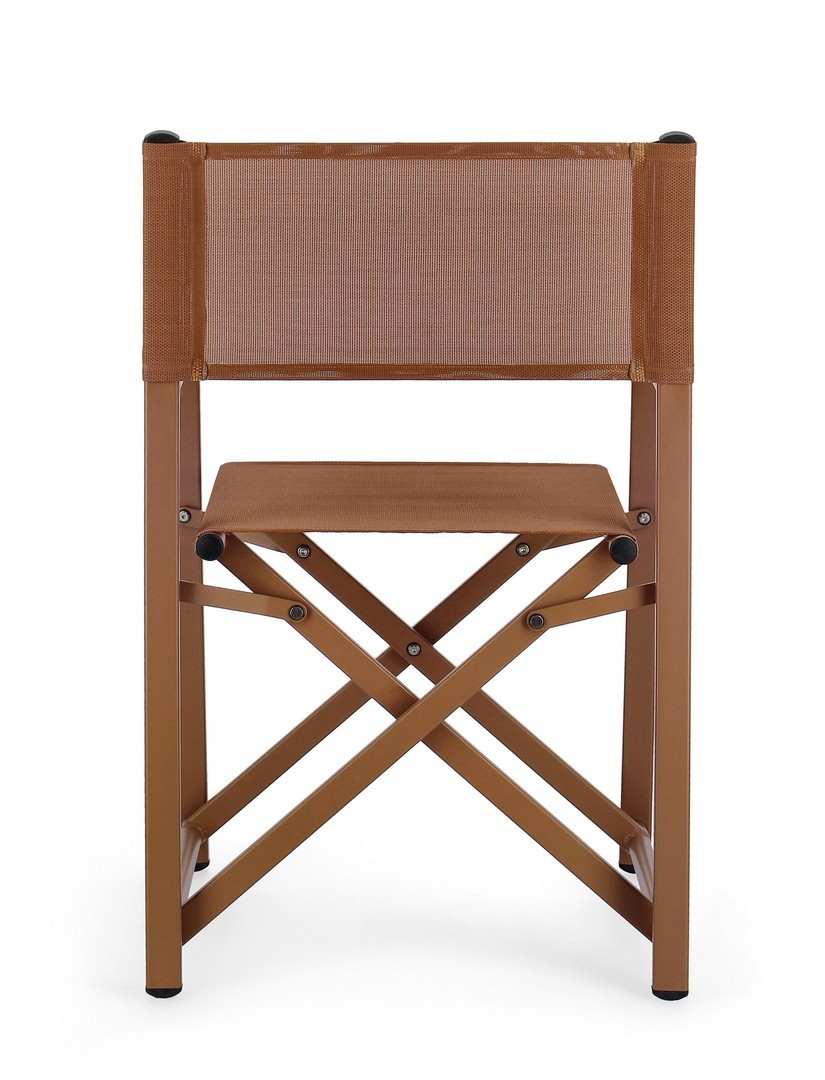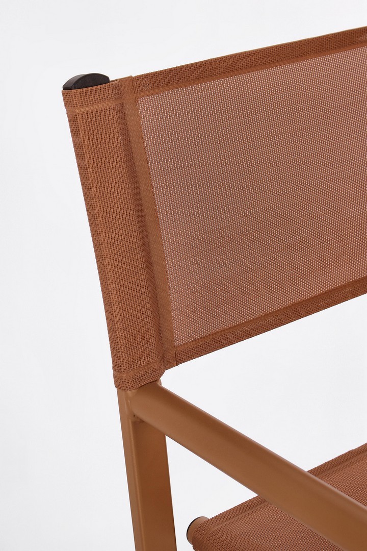 Hliníkový rám s práškovou povrchovou úpravou (polyester). Sedadlo a operadlo z textilénu 2×1 (610 g/m²), s tepelne zváranými švami. Galvanizovaný oceľový spojovací materiál.