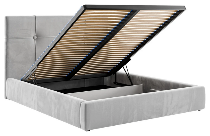 Posteľ je štandardne vybavená úložným priestorom na posteľnú bielizeň a zdvíhacím kovovým rámom s 24 lamelami na každej strane, čo je spolu 48 lamiel. Cena postele nezahŕňa matrac.