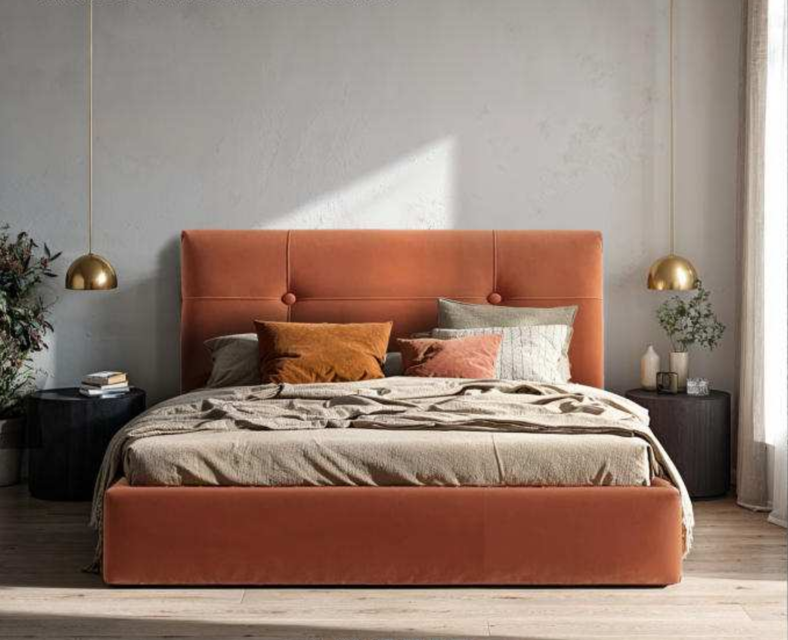 Posteľ TERMOLI je elegantnou voľbou, ktorá kombinuje moderný štýl s pohodlím. Má ľahký a decentný vzhľad. Jednoduché čelo postele je umocnené dizajnom prešitím a gombíkmi, vďaka čomu sa posteľ TERMOLI perfektne hodí do rôznych interiérových riešení a vytvára v spálni útulnú atmosféru.