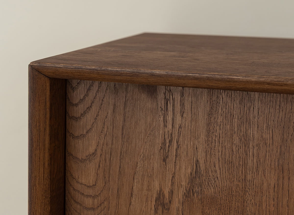 Premyslený dizajn je zárukou každodenného pohodlia. Do širokej hornej časti sa zmestí televízor, konzola a soundbar, zatiaľ čo priestranný interiér ukryje všetko vybavenie, káble a príslušenstvo. Vďaka systému soft-close sa dvere zatvárajú hladko, bez buchnutia a zbytočnej námahy. Konštrukcia z masívu dubového dreva zaručuje odolnosť a olejovaný povrch chráni nábytok pred stopami každodenného používania.
