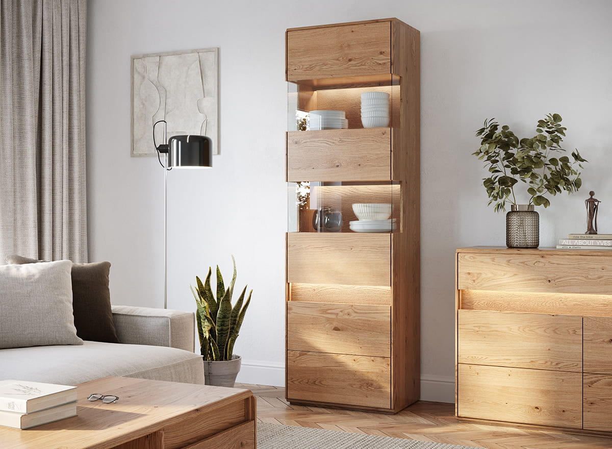 Pridať do sledovača cienZariaďujete si domácu kanceláriu, v ktorej budete prijímať klientov? Alebo si zariaďujete svoju vysnívanú obývaciu izbu v modernom štýle? Môžete staviť na osvedčené riešenia, univerzálny dubový nábytok zo série Divisione. Jednoduchý dizajn sa hodí do moderných aj klasickejších interiérov a koncový charakter interiéru dodajú doplňky. Séria Divisione by nebola úplná bez vitríny Divisione, v ktorej môžete nielen vystavovať, ale aj ukladať akékoľvek predmety.