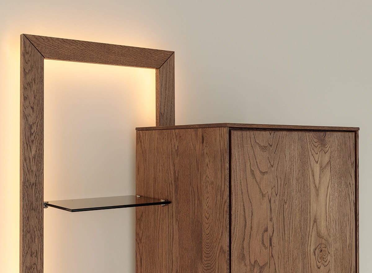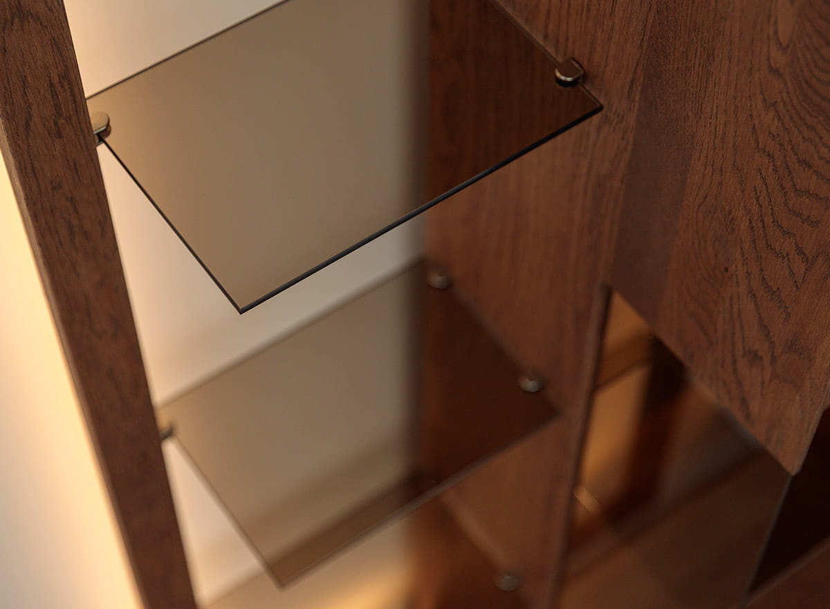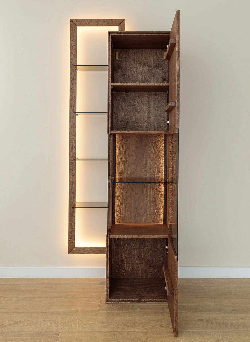 Pridať do sledovača cienZávesná dubová vitrína s knihovňou a osvetlením tabaková Collodi