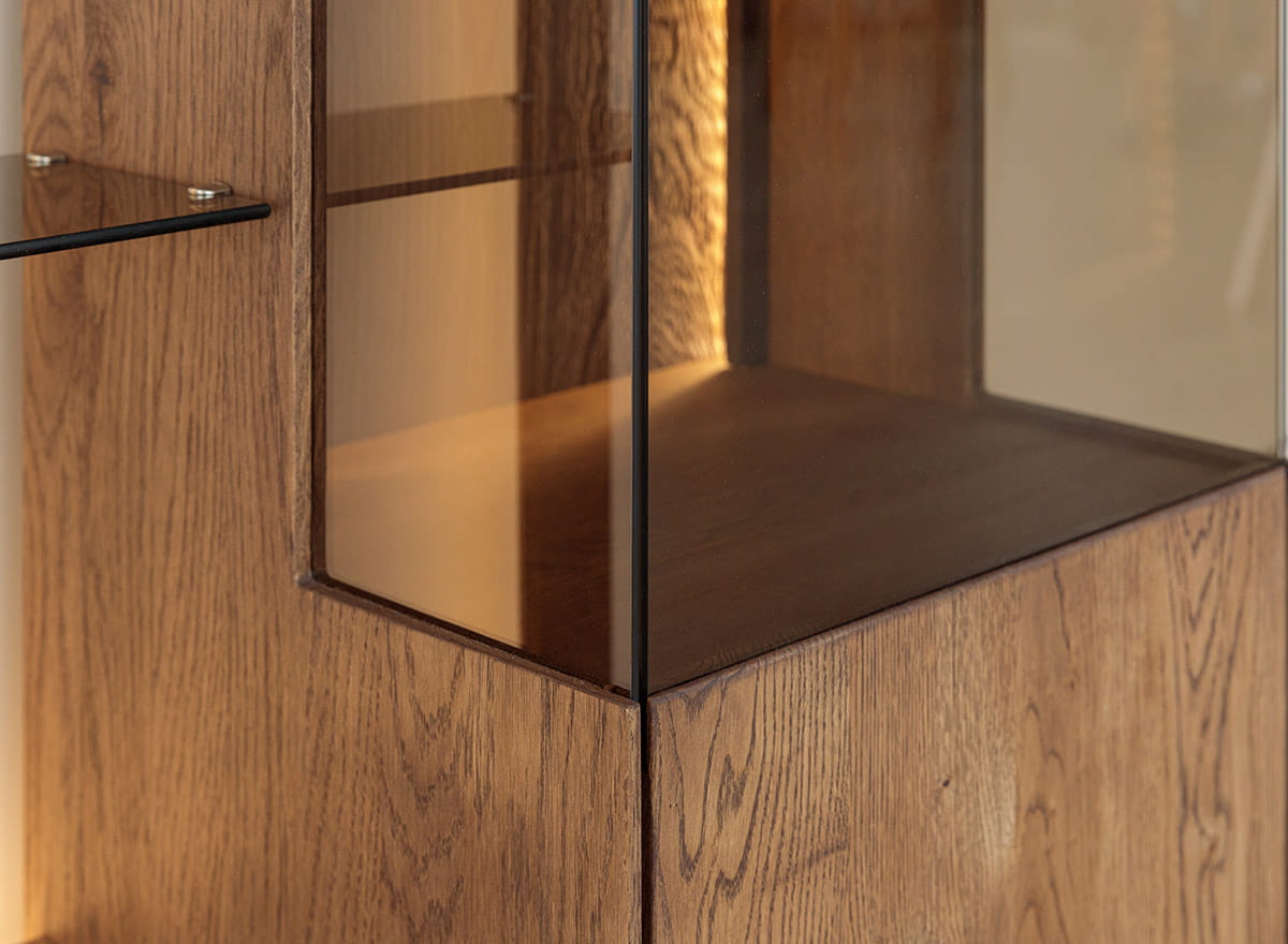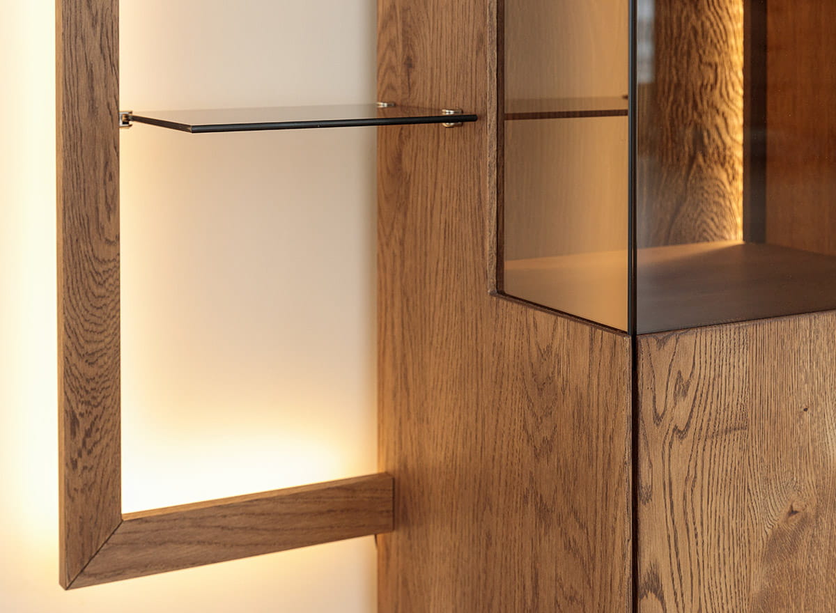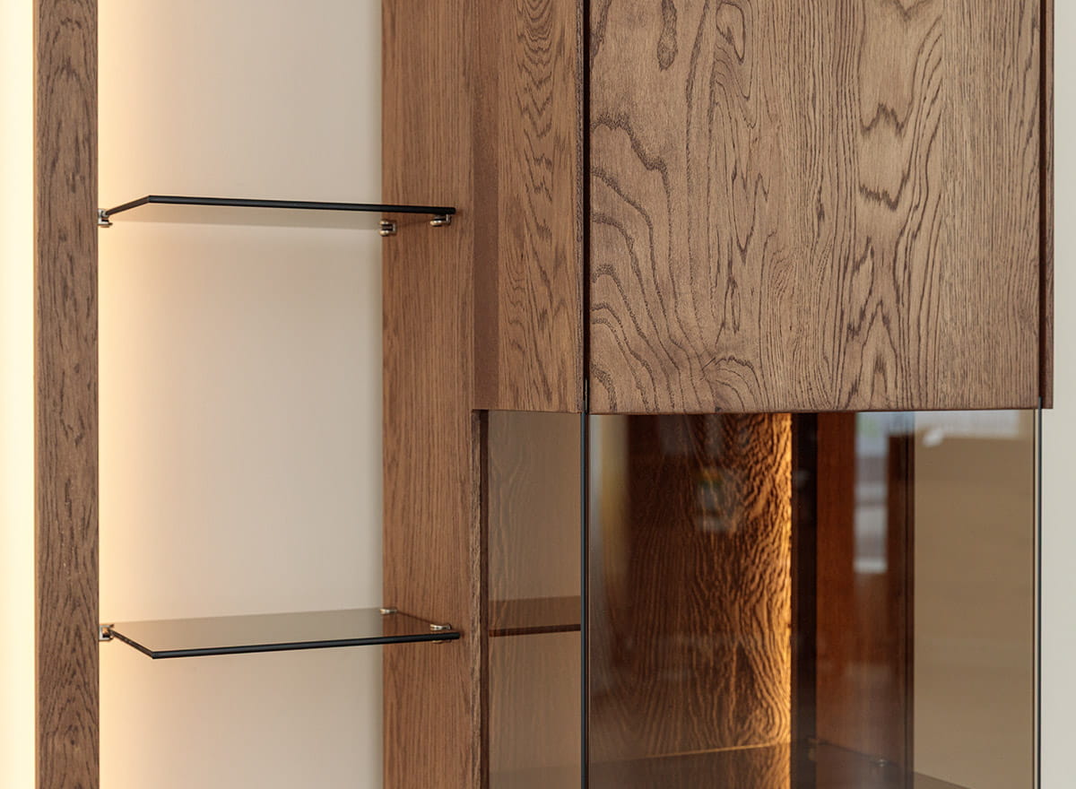 Pridať do sledovača cienNástenná vitrína Collodi s knihovňou dokazuje, že funkčnosť a dizajn môžu ísť ruka v ruke. Nábytok totiž vytvára teplý tabakový odtieň, výrazné zrná divokého duba a olejovaný povrch, vďaka čomu upúta pozornosť, ale nedominuje priestoru. Závesná konštrukcia dodáva ľahkosť a jemné LED podsvietenie dotvára atmosféru – najmä večer, keď sa vitrína zmení na štýlový zdroj svetla.